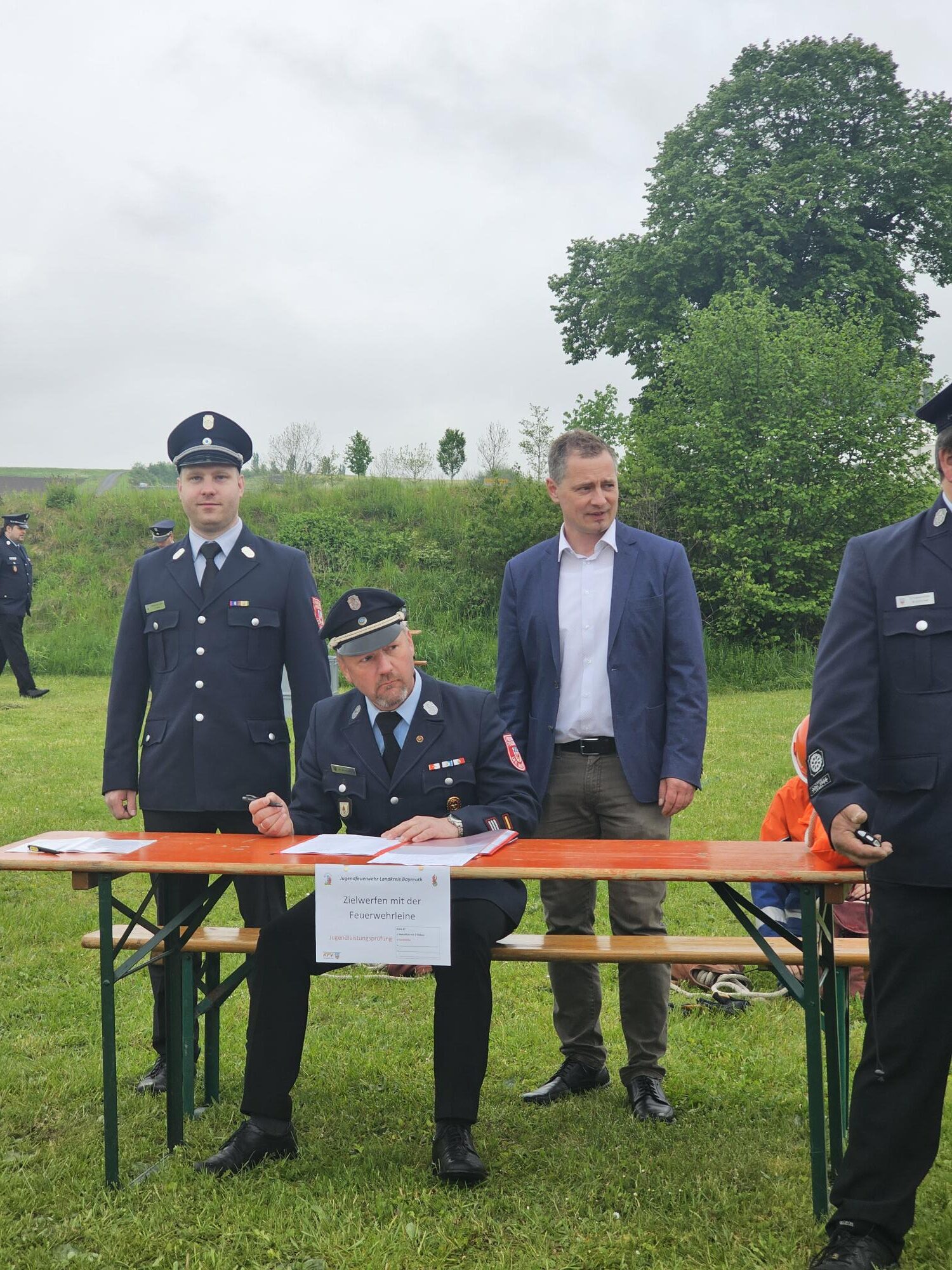Grußworte zur Eröffnung und zum Abschluss des Kreisjugendfeuerwehrtages sprachen neben Landrat Florian Wiedemann und Erstem Bürgermeister der Stadt Goldkronach Holger Bär auch Kreisjugendwart Tobias Eckert und die Kreisjugendgruppensprecherin Helena Schardt. Neben dem Dank an die Jugendlichen sich bereits in jungen Jahren ehrenamtlich für die Sicherheit der Bevölkerung zu engagieren, galt der Dank insbesondere auch der ausrichtenden Feuerwehr Dressendorf sowie den 25 eingesetzten Schiedsrichterinnen und Schiedsrichtern und Feuerwehrführungskräften des Landkreises Bayreuth. Die BRK Bereitschaft Bad Berneck stellte während der gesamten Veranstaltung die sanitäsdienstliche Betreuung sicher.