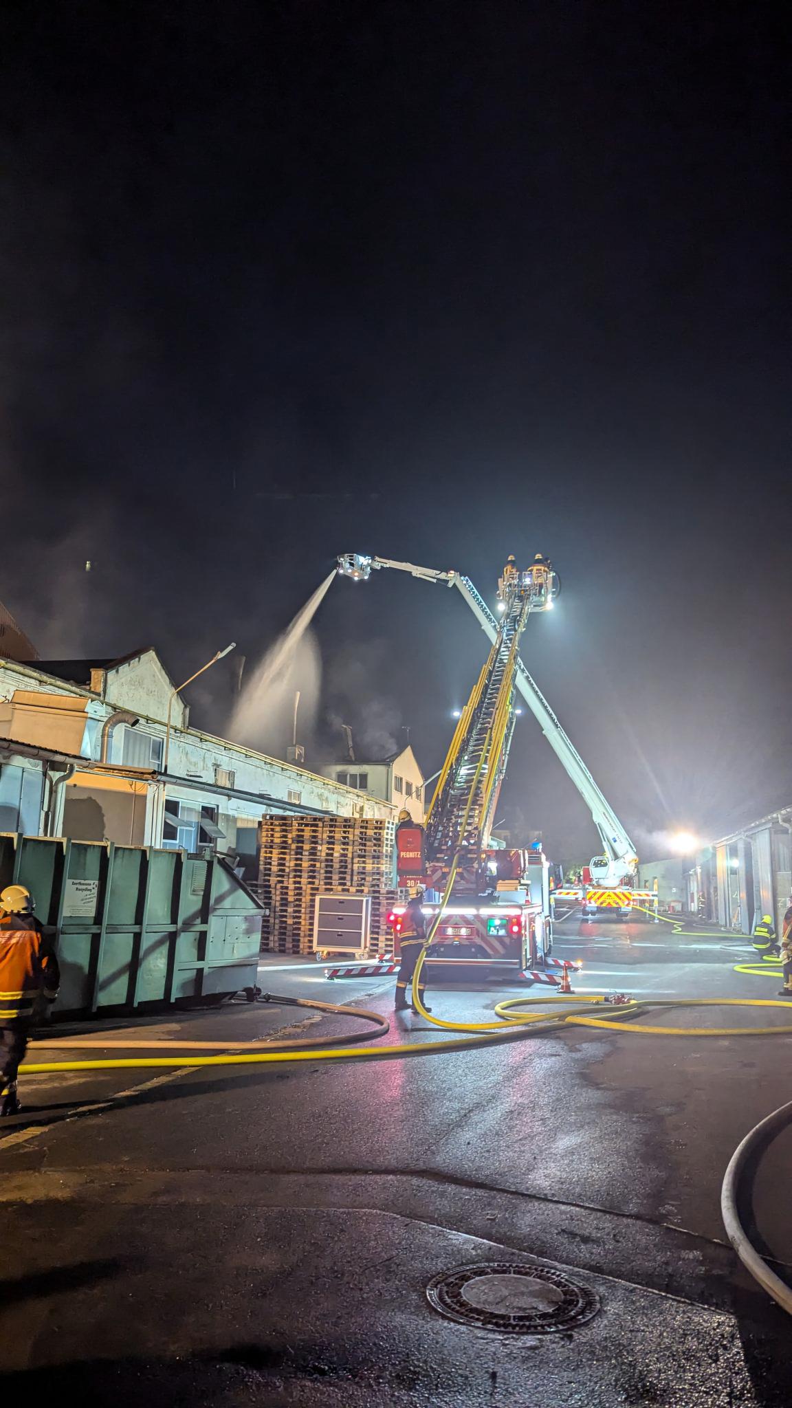 Gegen 17:30 Uhr fuhren unsere Züge gesammelt in den Landkreis Wunsiedel. An der Einsatzstelle im Industriegebiet Holenbrunn lösten sie Kameradinnen und Kameraden aus Wunsiedel ab und waren bei der Brandbekämpfung und Brandwache eingesetzt. Gegen 03:00 Uhr in der Nacht konnten erste Kräfte aus unserem Landkreis wieder zurück an ihren Standort kehren. Die verbleibenden Feuerwehren von uns in Wunsiedel wurden reduziert. Gegen 08:15 Uhr am Folgetag konnte der Löschzug Fichtelberg-Neubau, Hollfeld 55/1 mit dem Wolf-R1, Pegnitz 23/1 und der Weidenberg 40/1 ebenfalls wieder zu ihren Standorten zurückkehren. Somit war für die insgesamt vier eingesetzten Züge der Einsatz im Nachbarlandkreis komplett beendet.