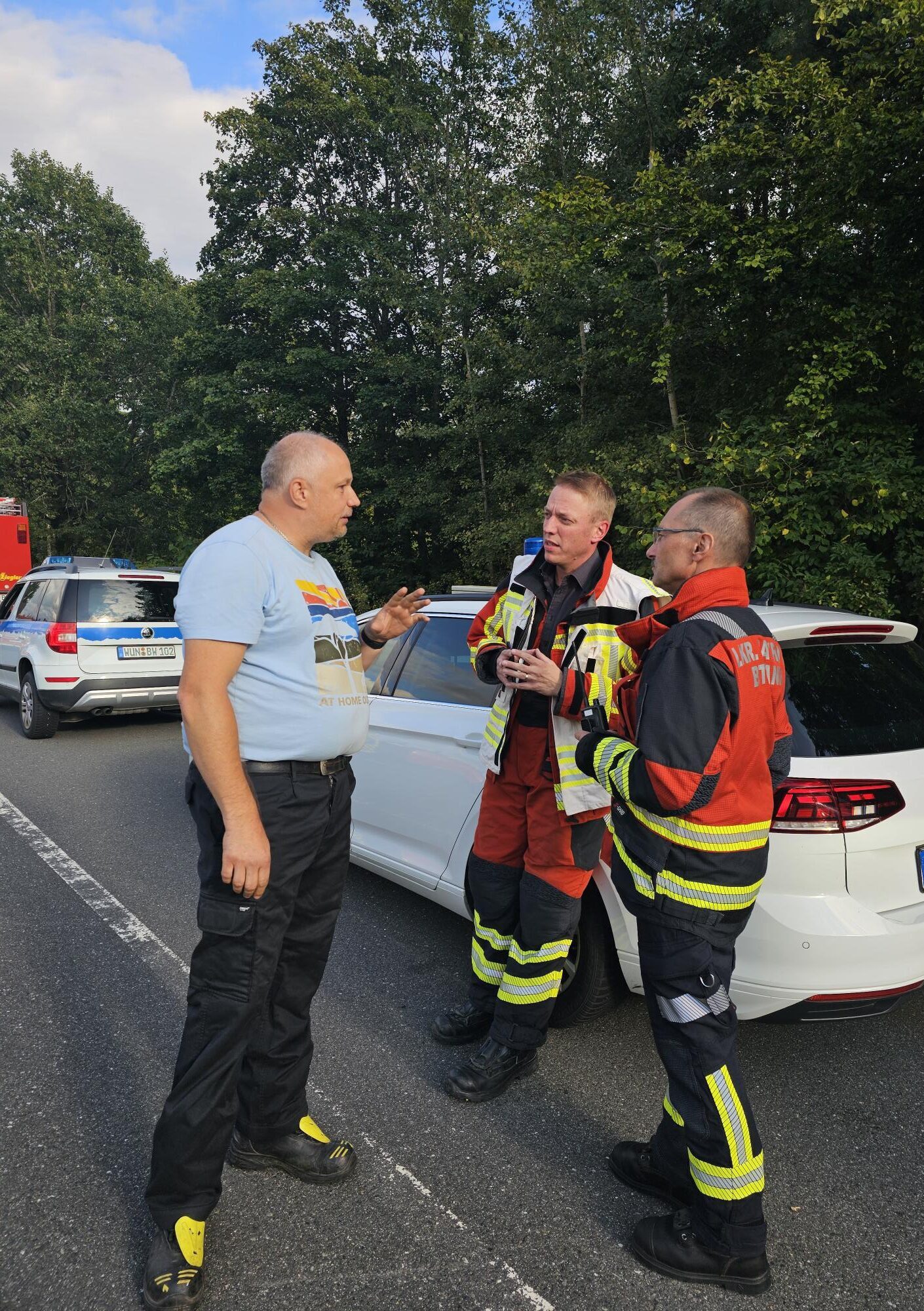 Die Löschzüge Fichtelberg-Neubau, Hollfeld, Pegnitz und Weidenberg sammelten sich am Parkplatz „Silberhaus“ neben der B303 an der Landkreisgrenze von Bayreuth und Wunsiedel. Die Führungseinheit der angeforderten Züge übernahmen die UG-ÖEL mit dem Kater Bayreuth Land 12/1 und den Kreisbrandinspektoren Stefan Steger und Jürgen Wunderlich. Der Zug bestand aus 20 Fahrzeugen und den Abrollbehältern Logistik und Atemschutz-Strahlenschutz sowie dem Löschroboter Wolf-R1. Insgesamt waren 88 Feuerwehreinsatzkräfte mit 48 Trägern von Atemschutz und 7 Kräfte der Führungseinheit eingesetzt. Der Kreisbrandmeister für Atemschutz, Sebastian Koch, wurde wegen der Vielzahl der Geräteträger mit in den Landkreis Wunsiedel angefordert.