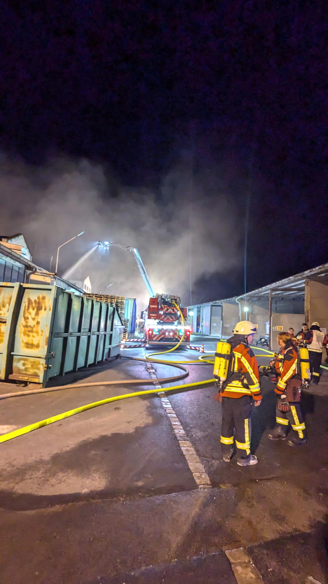 Gegen 17:30 Uhr fuhren unsere Züge gesammelt in den Landkreis Wunsiedel. An der Einsatzstelle im Industriegebiet Holenbrunn lösten sie Kameradinnen und Kameraden aus Wunsiedel ab und waren bei der Brandbekämpfung und Brandwache eingesetzt. Gegen 03:00 Uhr in der Nacht konnten erste Kräfte aus unserem Landkreis wieder zurück an ihren Standort kehren. Die verbleibenden Feuerwehren von uns in Wunsiedel wurden reduziert. Gegen 08:15 Uhr am Folgetag konnte der Löschzug Fichtelberg-Neubau, Hollfeld 55/1 mit dem Wolf-R1, Pegnitz 23/1 und der Weidenberg 40/1 ebenfalls wieder zu ihren Standorten zurückkehren. Somit war für die insgesamt vier eingesetzten Züge der Einsatz im Nachbarlandkreis komplett beendet.