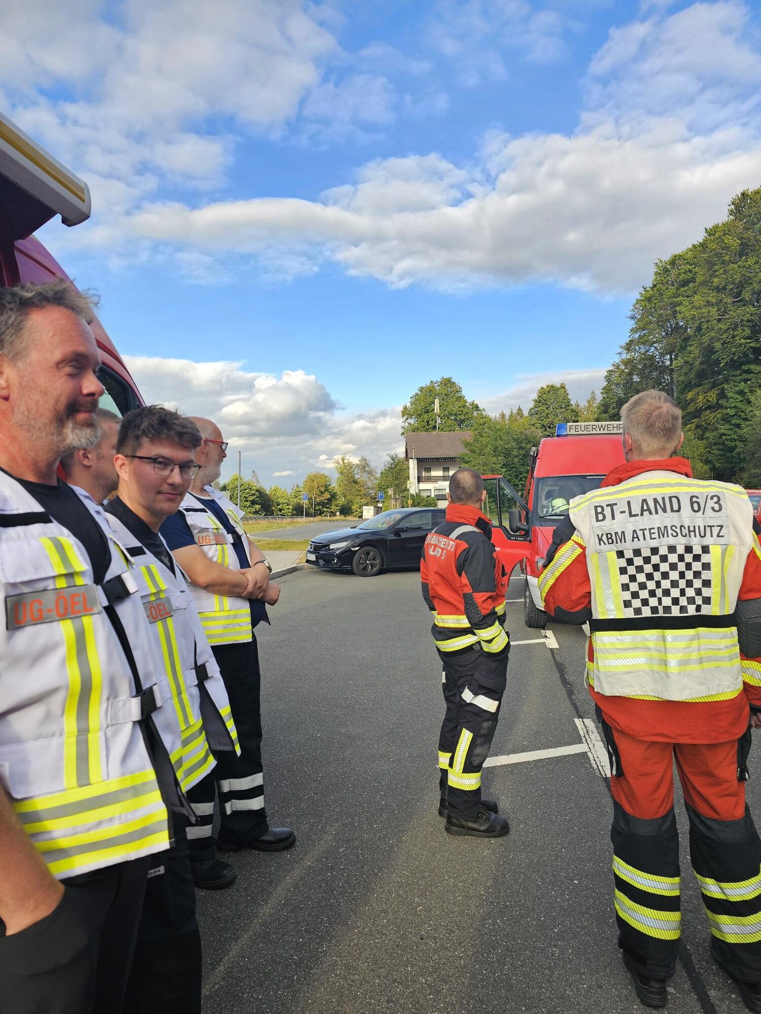Die Löschzüge Fichtelberg-Neubau, Hollfeld, Pegnitz und Weidenberg sammelten sich am Parkplatz „Silberhaus“ neben der B303 an der Landkreisgrenze von Bayreuth und Wunsiedel. Die Führungseinheit der angeforderten Züge übernahmen die UG-ÖEL mit dem Kater Bayreuth Land 12/1 und den Kreisbrandinspektoren Stefan Steger und Jürgen Wunderlich. Der Zug bestand aus 20 Fahrzeugen und den Abrollbehältern Logistik und Atemschutz-Strahlenschutz sowie dem Löschroboter Wolf-R1. Insgesamt waren 88 Feuerwehreinsatzkräfte mit 48 Trägern von Atemschutz und 7 Kräfte der Führungseinheit eingesetzt. Der Kreisbrandmeister für Atemschutz, Sebastian Koch, wurde wegen der Vielzahl der Geräteträger mit in den Landkreis Wunsiedel angefordert.