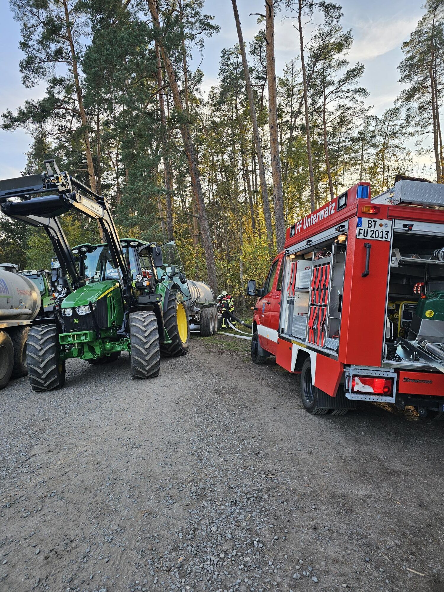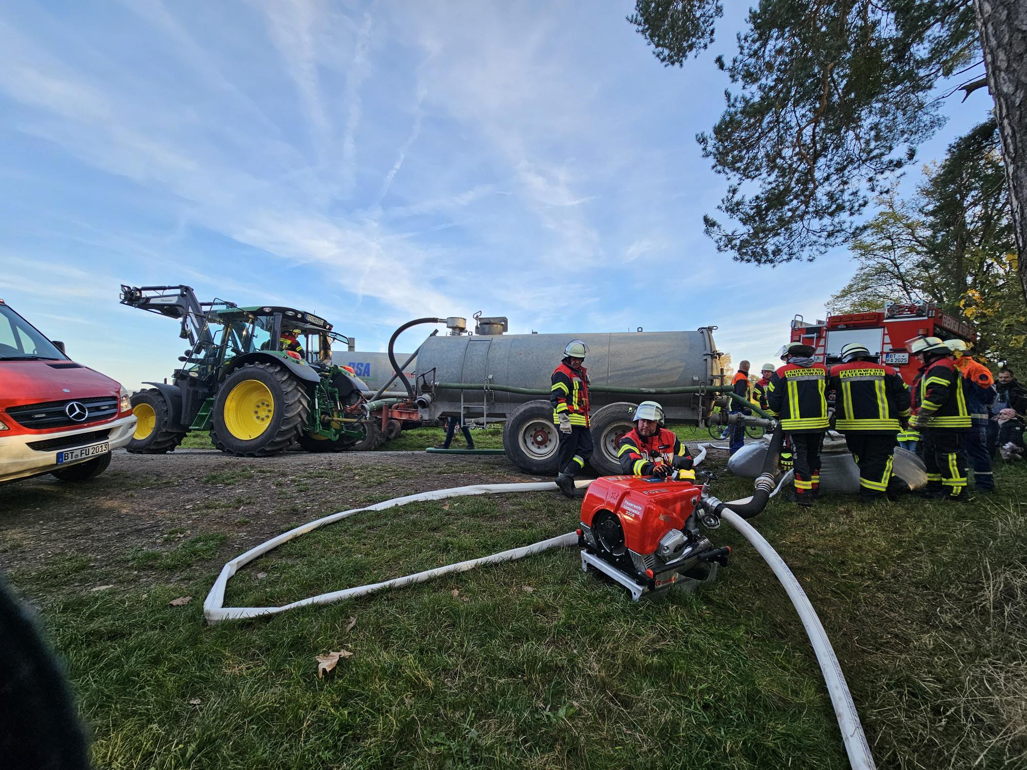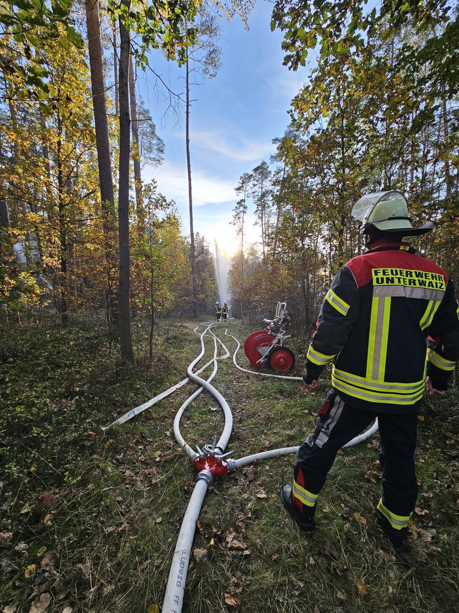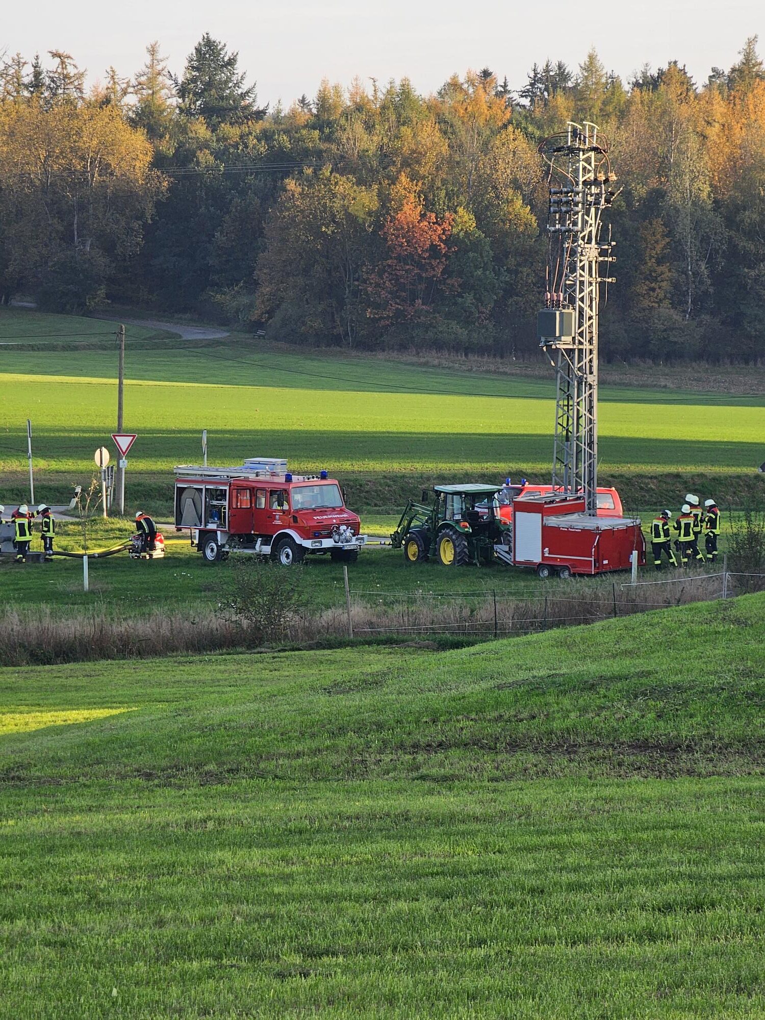 Ein anfänglich kleiner Brand auf einem Spielplatz dehnte sich rasch zu einem ausgedehnten Waldbrand aus. Feuerwehren aus drei Gebietskörperschaften wurden daraufhin in den Gemeindebereich Heinersreuth alarmiert. 4 Hektar Wald standen bei Eintreffen der nachalarmierten Feuerwehreinsatzkräfte aus dem Landkreis Bayreuth, der Stadt Bayreuth und dem Landkreis Kulmbach am Samstag den 26. Oktober 2024 größten teils in Flammen. Was durchaus ein Ernstfall sein könnte war eine großangelegte Übung der Freiwilligen Feuerwehr Heinersreuth am Samstag den 26. Oktober. Für die Zukunft gut aufgestellt zu sein und Handlungsabläufe zu üben um festzustellen wo für den tatsächlichen Ernstfall noch Handlungsbedarf besteht sind die Ziele solch groß angelegter Übungen. Wie sich herauskristallisierte funktionierte die Zusammenarbeit zwischen der Feuerwehren aus den drei Gebietskörperschaften und den Landwirten hervorragend.