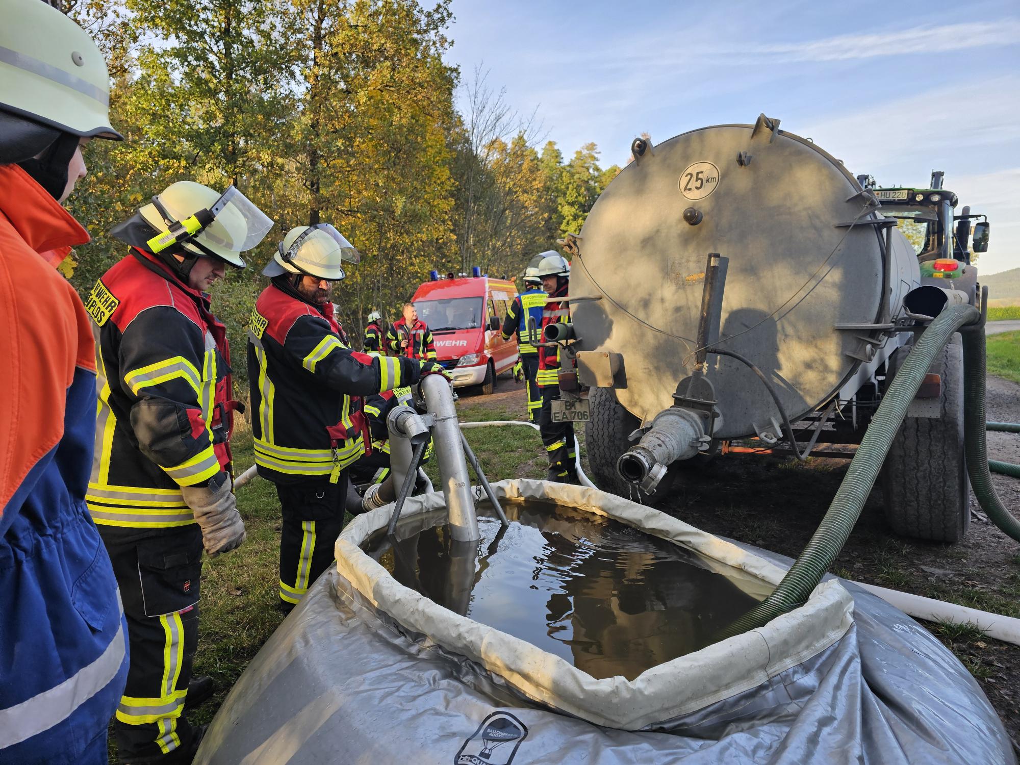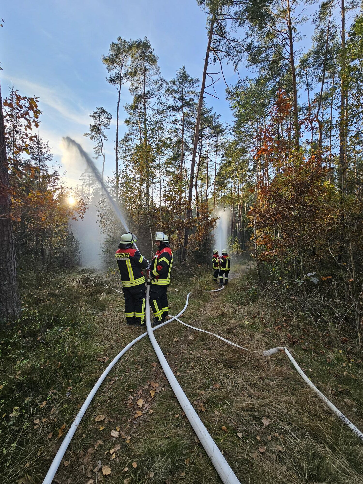 Ein anfänglich kleiner Brand auf einem Spielplatz dehnte sich rasch zu einem ausgedehnten Waldbrand aus. Feuerwehren aus drei Gebietskörperschaften wurden daraufhin in den Gemeindebereich Heinersreuth alarmiert. 4 Hektar Wald standen bei Eintreffen der nachalarmierten Feuerwehreinsatzkräfte aus dem Landkreis Bayreuth, der Stadt Bayreuth und dem Landkreis Kulmbach am Samstag den 26. Oktober 2024 größten teils in Flammen. Was durchaus ein Ernstfall sein könnte war eine großangelegte Übung der Freiwilligen Feuerwehr Heinersreuth am Samstag den 26. Oktober. Für die Zukunft gut aufgestellt zu sein und Handlungsabläufe zu üben um festzustellen wo für den tatsächlichen Ernstfall noch Handlungsbedarf besteht sind die Ziele solch groß angelegter Übungen. Wie sich herauskristallisierte funktionierte die Zusammenarbeit zwischen der Feuerwehren aus den drei Gebietskörperschaften und den Landwirten hervorragend.