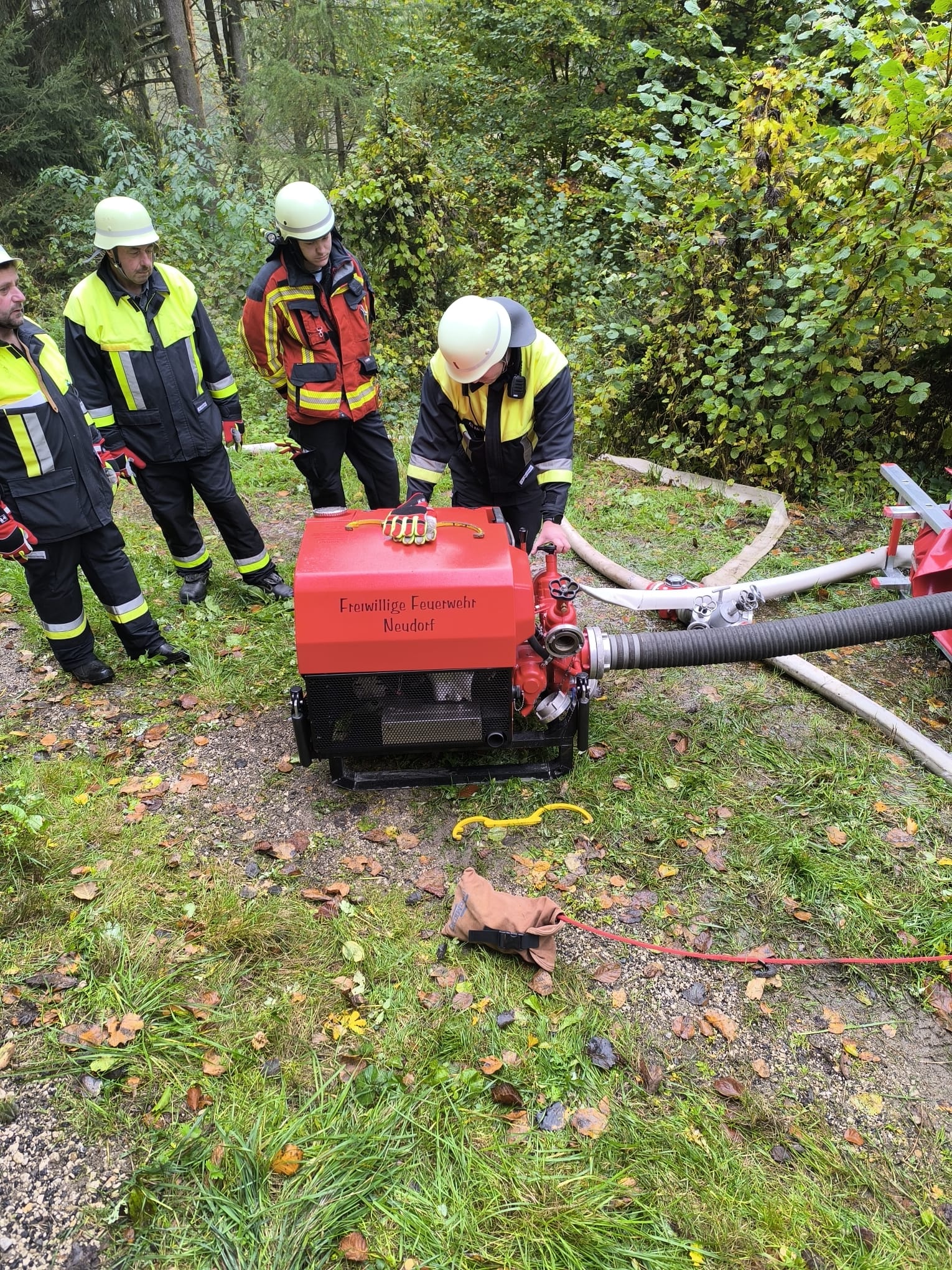 Im Rahmen der modularen Standortschulungen der Ausbildungsinspektion des Landkreises Bayreuth, fand am 19. Oktober 2024 eine vierstündige Weiterbildung für bereits ausgebildete Maschinisten im Unterkreis 11 statt. Kreisausbilder für Maschinisten, KBM Michael Güllner, bot den Teilnehmenden neben einer Stunde Theorie zur Auffrischung rund drei Stunden Praxisausbildung im Bereich Pumpenstandorte markieren, mittels App die markierten Standorte kontrollieren um danach die offene Wasserförderung mittels Faltbehälter und langer Schlauchstrecke zu üben. Ziel der Standortschulungen, welche in den verschiedensten Bereichen unserer Ausbildungsinspektion angeboten werden, ist es gezielt bereits vorhandenes Wissen aufzufrischen und einzelne Themen als Schwerpunkte zu üben und zu vertiefen. Eine gezielte Kompetenzentwicklung, an den Bedarf der teilnehmenden Feuerwehren ausgerichtet, steht dabei im Fokus. Von den Standortschulungen können auch einzelne Feuerwehren gebrauch machen. Die Besonderheit im Unterkreis 11 ist, dass diese Übung jedes Jahr für alle Maschinisten im Unterkreis 11 und jene welche Interesse an der Maschinistenausbildung auf Landkreisebene haben, angeboten und durchgeführt wird. Heuer erweiterten und festigten 26 Einsatzkräfte aus den Freiwilligen Feuerwehren Bronn, Buchau, Büchenbach, Körbeldorf, Langenreuth, Leups, Stemmenreuth und Zips ihre Fähigkeiten.