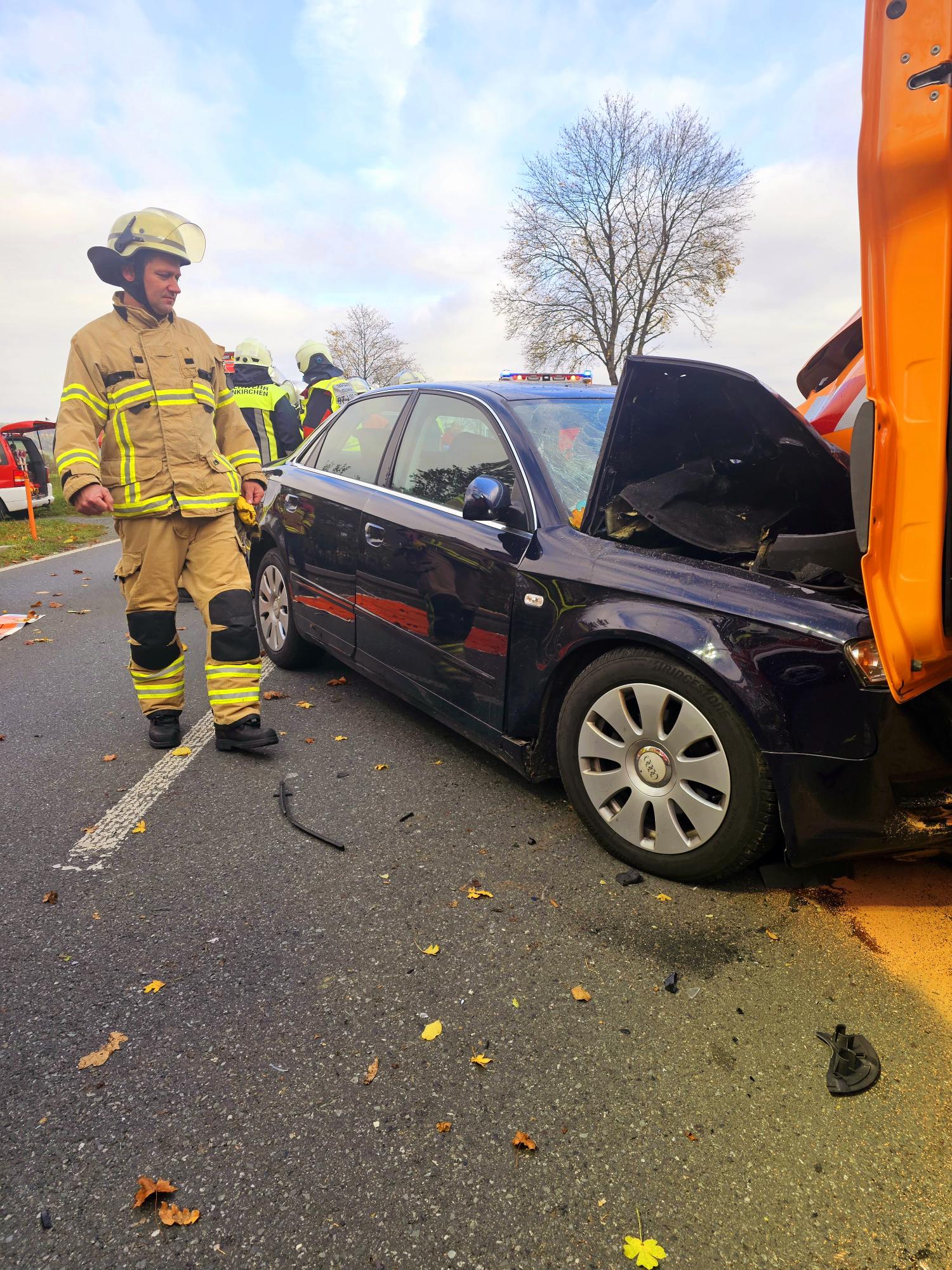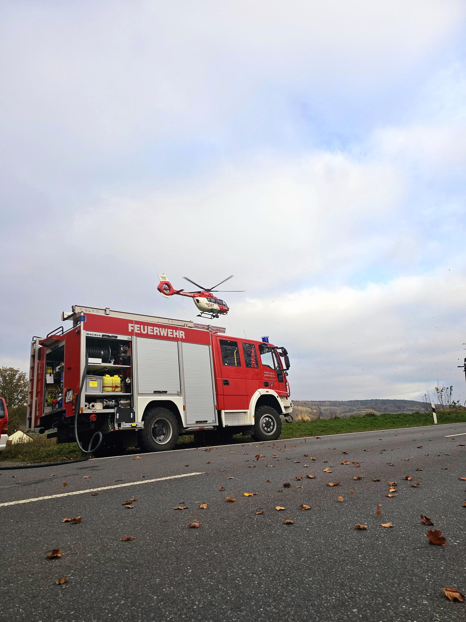 Zu einem schweren Verkehrsunfall wurden die Freiwilligen Feurwehren Lehen, Neunkirchen a. Main und Seybothenreuth zusammen mit der Feuerwehr der Stadt Bayreuth, dem Rettungsdienst und der Polizei, am Donnerstag den 07.11.2024 gegen 14 Uhr, auf die B22 Höhe Neunkirchen a. Main alarmiert. Anfänglich durch einen e-Call und zügig durch eingehende Notrufe in der ILS Bayreuth/Kulmbach gemeldet wurde ein schwerer Verkehrsunfall bei dem ein PKW mit einem Transporter zusammengestoßen waren. Die Feuerwehr ging im ersten Moment davon aus das sich in mindestens einem Fahrzeug eingeklemmte Personen befinden. Bei Eintreffen an der Einsatzstelle befreiten sie die sich im PKW befindende, schwerverletzte Person zügig um sie an den Rettungsdienst zu übergeben. Weitere drei leichtverletzte wurden ebenfalls durch den Rettungsdienst behandelt. Es wurden auslaufende Betriebsstoffe gebunden, der Brandschutz sichergestellt und die B22 für eine Dauer von rund 2,5 h komplett gesperrt. Der Rettungshubschrauber Christoph 80 aus Weiden i.d.Opf. landete direkt an der Unfallstelle. Gegen 17:30 Uhr konnten die letzten Feuerwehreinsatzkräfte wieder zurück an ihre Standorte kehren. Im Einsatz waren 60 Feuerwehreinsatzkräfte.