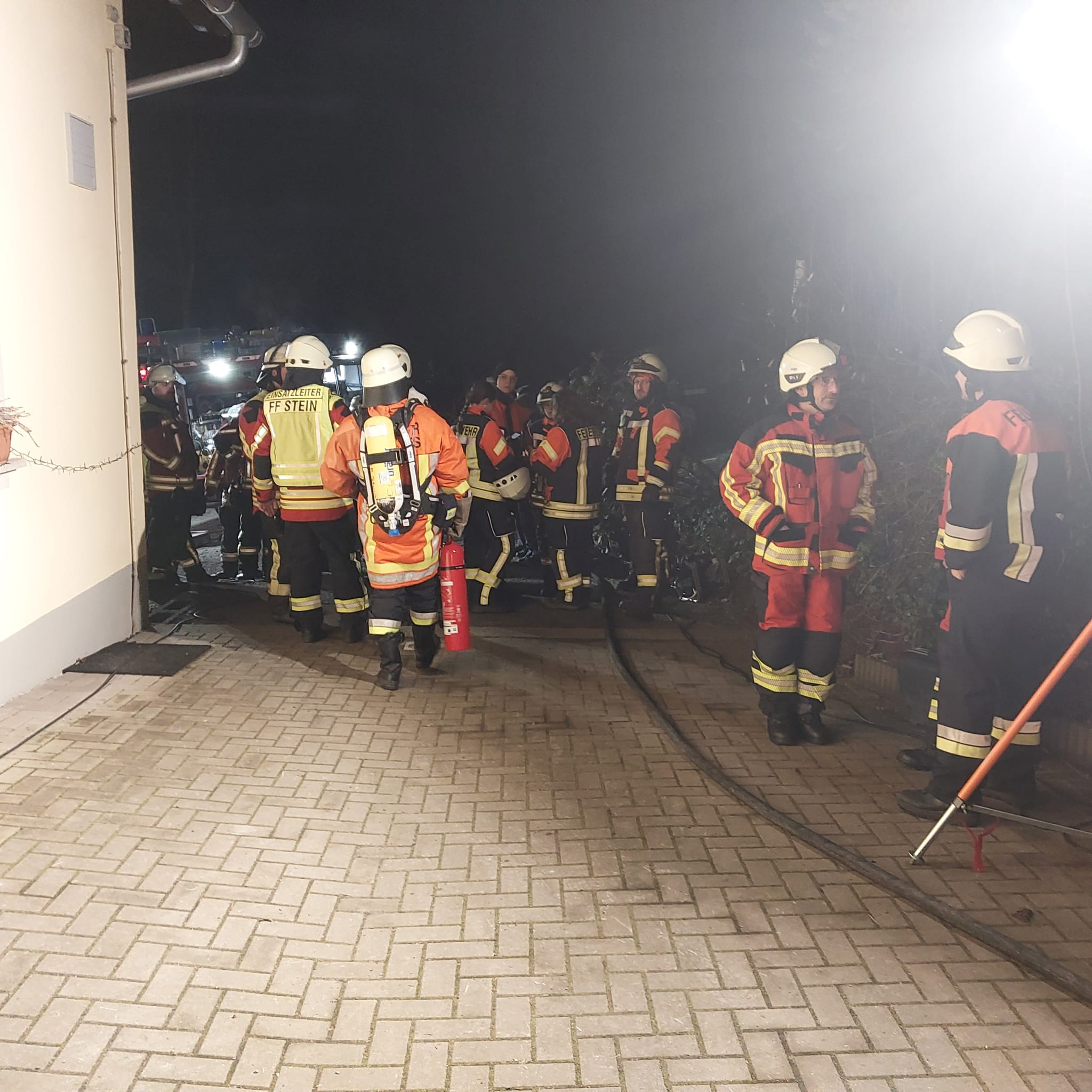 Ein Energieversorger wurde zur Einsatzstelle gerufen, um das komplette Gebäude stromlos zu schalten. Für die Gäste der Pension wurde eine Ersatzunterkunft organisiert. Die Freiwillige Feuerwehr Stein, als örtlich zuständige Wehr, übernahm in der Nacht die Brandwache.