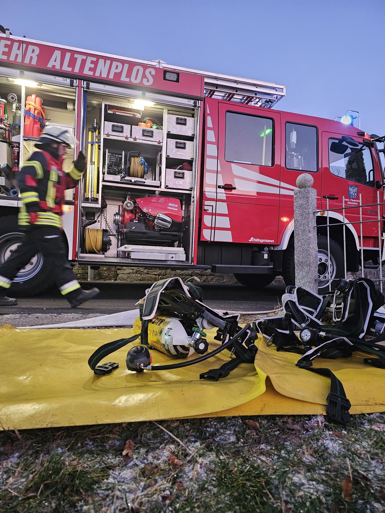 Die erst eintreffenden Kräfte stellten eine starke Verrauchung im Gebäude fest und schickten umgehend zur weiteren Erkundung Atemschutzgeräteträger ins Gebäude. Diese stellten einen Schwelbrand eines Adventskranzes fest. Die eingesetzten Atemschutztrupps brachten diesen samt Esstisch ins Freie, wo er abgelöscht wurde. Die Feuerwehren belüfteten danach das Gebäude ausreichend. Das Gebäude war komplett verqualmt und die Zimmer verrußt. Personen waren keine in Gefahr. An der Einsatzstelle befanden sich die Feuerwehren Altenplos und Heinersreuth mit rund 20 Feuerwehrdienstleistenden, für die restlichen Kräfte war kein Eingreifen mehr notwendig. Gegen 17:30 Uhr konnten die Wehren wieder zurück an ihre Standorte fahren.