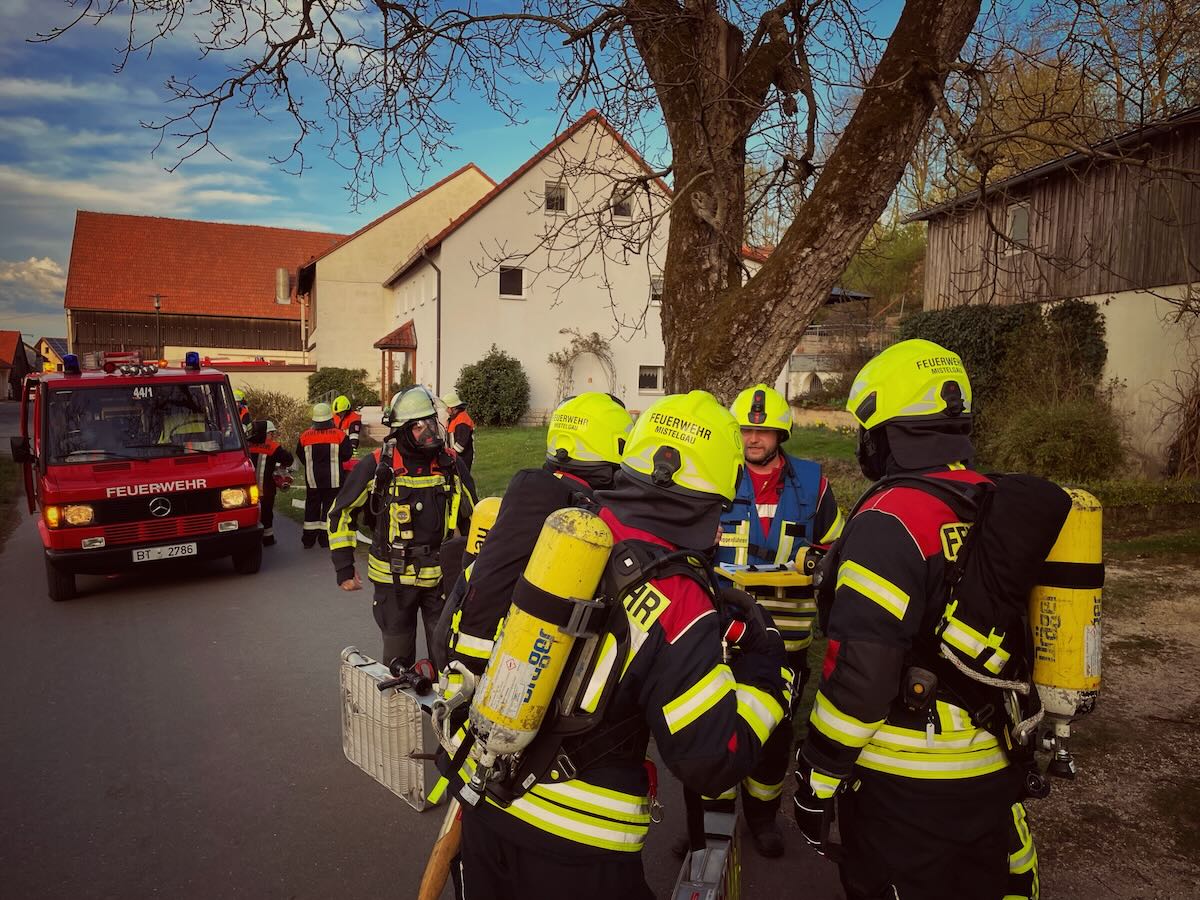 Alles in allem eine herausfordernde Ausgangssituation, der sich die Feuerwehrleute stellten, zumal die beengten Zufahrtswege nur wenige Möglichkeiten für die Raumordnung zuliessen. Ausströmendes Gas sorgte zusätzlich für die Notwendigkeit, im ersten Anlauf unter Atemschutz vorzugehen. Unter der Leitung von Kommandant Sebastian Moritz wurden die Einsatzabschnitte Personenrettung/Atemschutz, Brandbekämpfung und Löschwasserversorgung gebildet und die anrückenden Kräfte nach und nach zugewiesen. Die beteiligten Wehren Plösen-Gollenbach, Mistelgau, Glashütten, Seitenbach, Wohnsgehaig, Frankenhaag, Obernsees und Truppach-Mengersdorf hatten hierbei alle Hände voll zu tun. Um einen bestmöglichen Übungseffekt zu erzielen, werden die Feuerwehren in der Inspektion II zwar über den Übungstag und ein Zeitfenster informiert, nicht aber über die konkret zu erwartende Lage, so dass die Übungen wie im Ernstfall ablaufen.