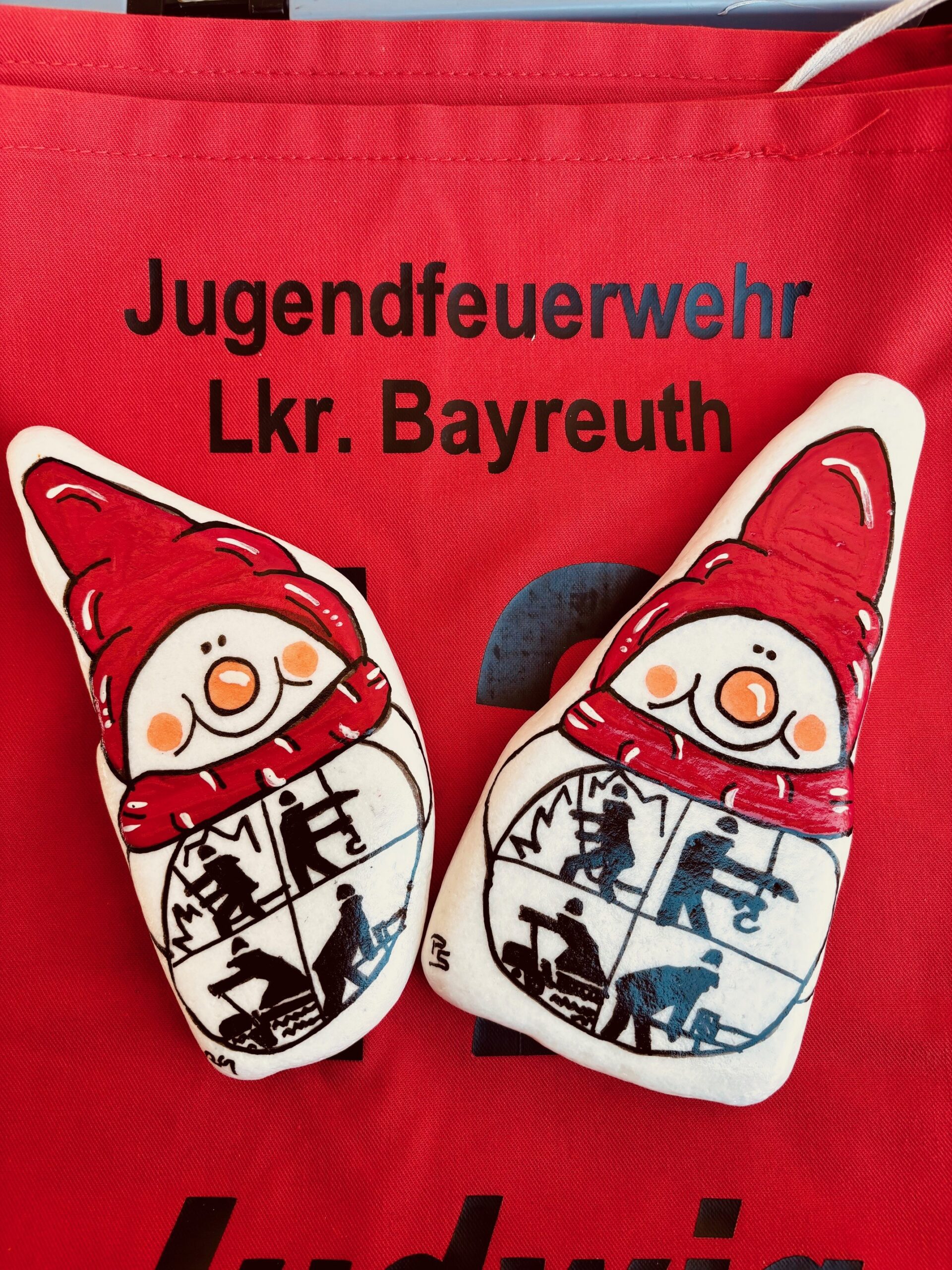 Die Jugendfeuerwehr im Landkreis Bayreuth kann in diesem Jahr auf das 40-jährige Bestehen der Jugendordnung zurückblicken. Im Rahmen der ganzjährigen Spendenaktion „Schneemannsteine“ macht die Jugendfeuerwehr im Landkreis Bayreuth auf ihre Arbeit aufmerksam. Als kleines Dankeschön wurde den beiden Ausrichtern ein besonderer Schneemannsteine überreicht.