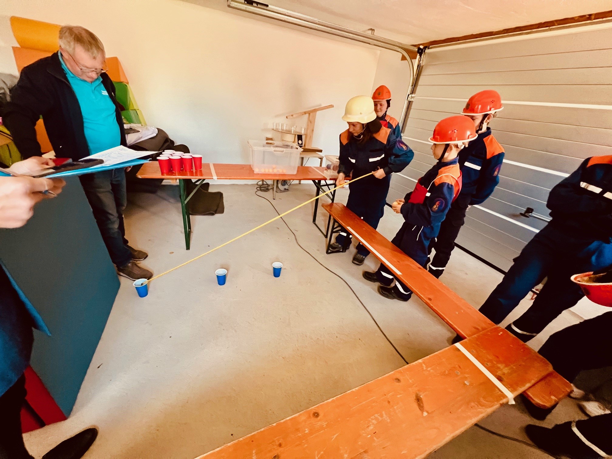 - Zielwurf mit der Feuerwehrleine durch ein Hindernis