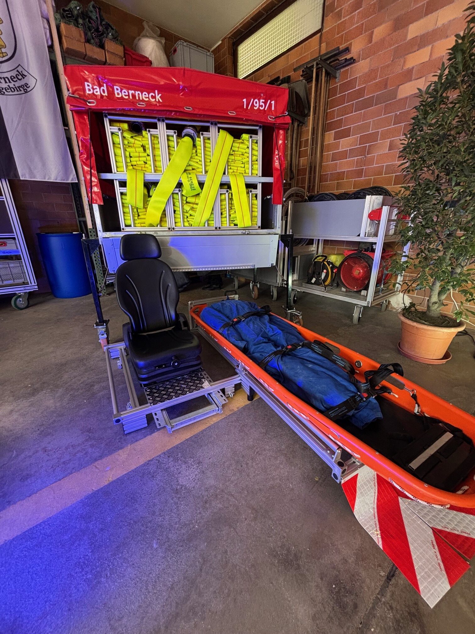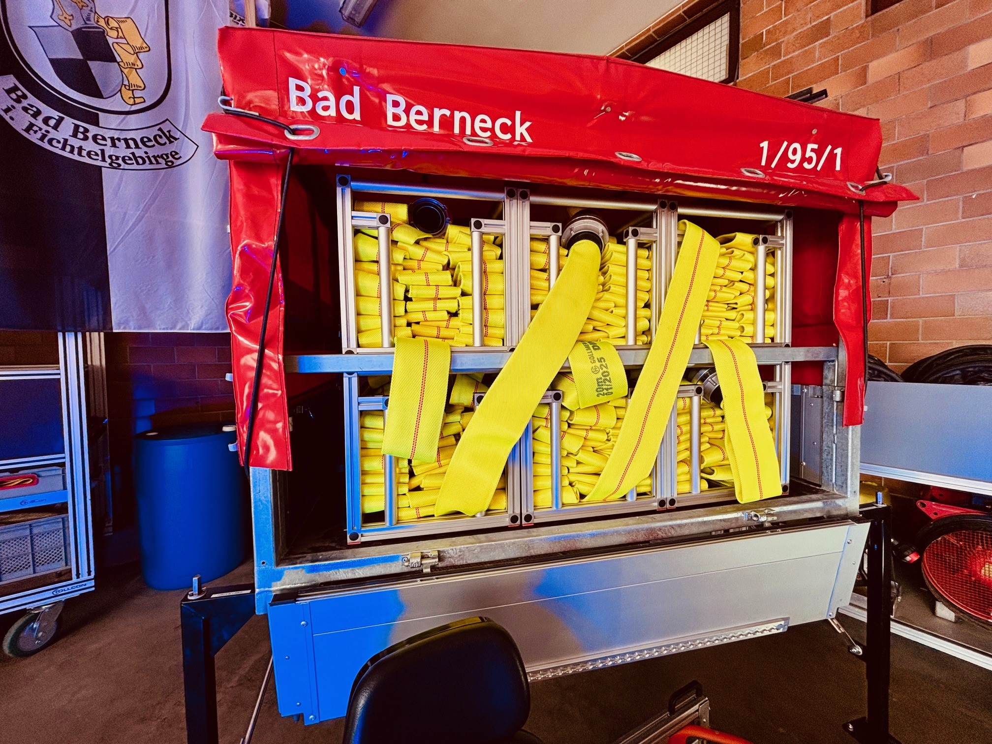Nach der Auslieferung des Fahrzeugs, das durch den Landkreis Bayreuth finanziert wurde, erfolgten weitere individuelle Anpassungen: So wurde z. B. ein bestehendes Modul umgerüstet, um eine vorhandene Schleifkorbtrage sicher transportieren zu können. Ein weiteres Modul wurde mit 600 Metern B-Schlauch bestückt, um künftig eigenständig längere Schlauchleitungen verlegen zu können.
