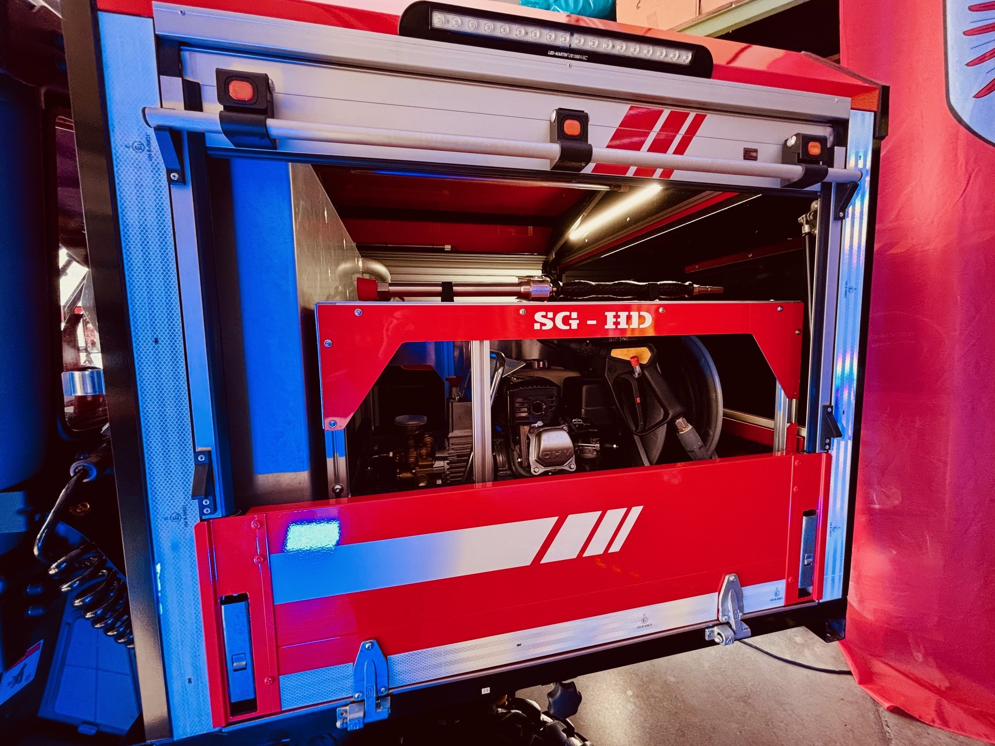 Brandbekämpfung: Transport einer Hochdrucklöschanlage mit Wasser und/oder Schaum zur Bekämpfung kleinerer Brände,