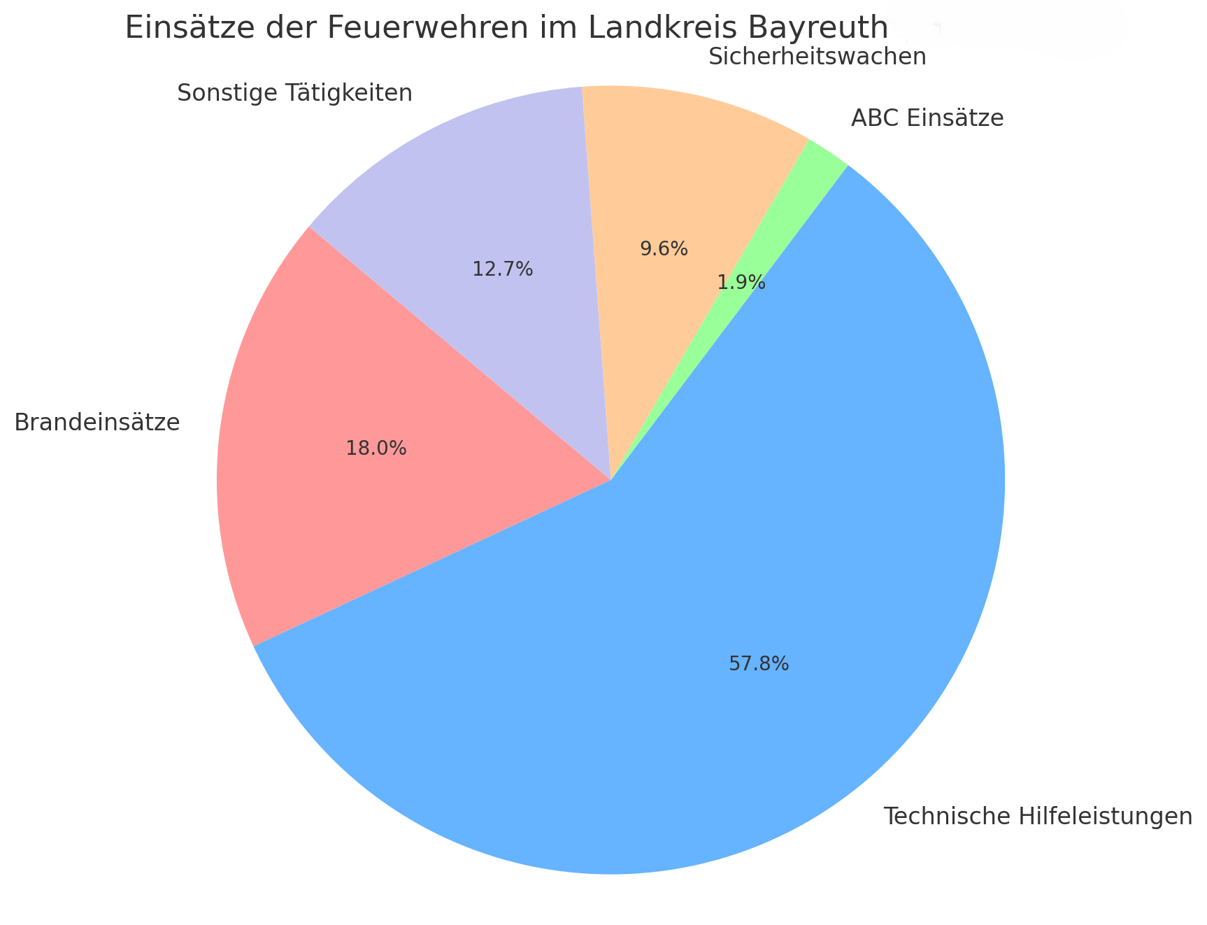 Im vergangenen Jahr kamen die Feuerwehren im Landkreis Bayreuth zu insgesamt 1.746 Einsätzen. Darunter waren 315 Brandeinsätze, 1.009 technische Hilfeleistungen, 33 ABC-Einsätze, 167 Sicherheitswachen sowie 222 weitere Aufgaben.