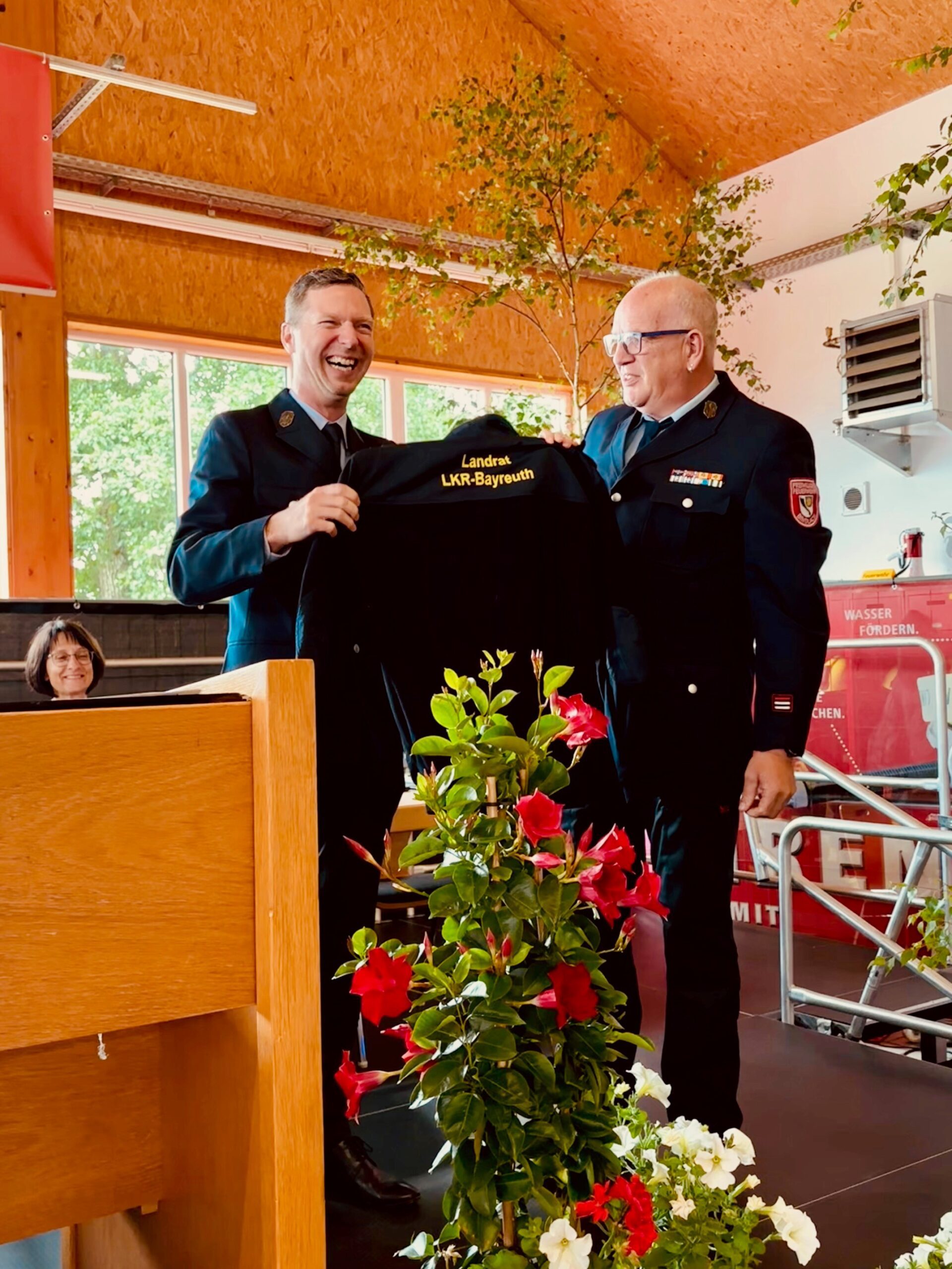 Landrat Florian Wiedemann, Bürgermeister Karl Lappe sowie der Landtagsabgeordnete MdL Franc Dierl richteten im Rahmen der Veranstaltung persönliche und wertschätzende Grußworte an die Feuerwehrkräfte.