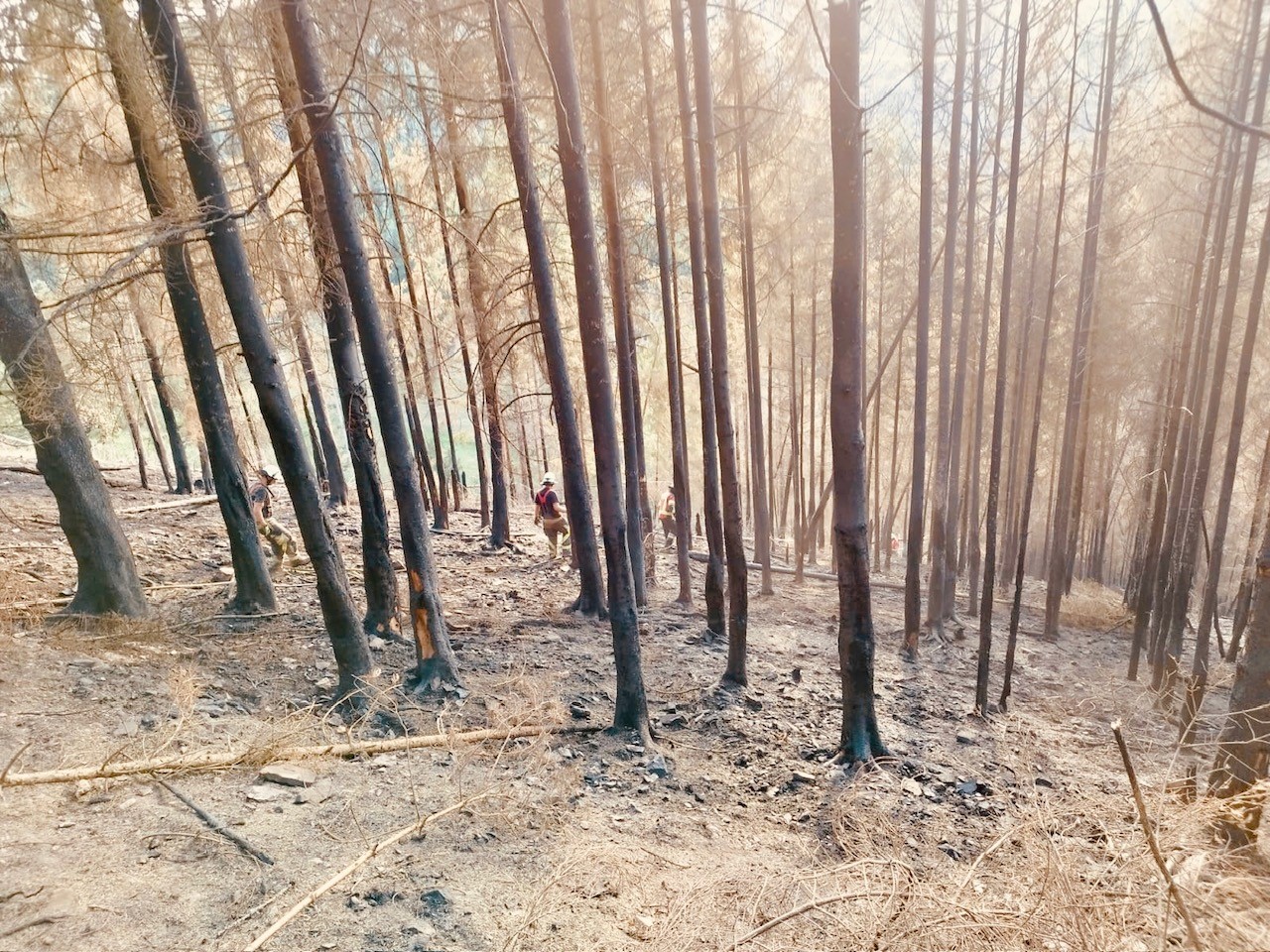 Vor allem die schwierige Topografie und der anhaltende Wind erschweren die Brandbekämpfung. Immer wieder entflammen Glutnester, die teils tief im Erdreich liegen, zu neuen, gefährlichen Brandstellen. Die körperlich äußerst fordernde Arbeit der Einsatzkräfte verlangt daher höchste Konzentration, Kraft und Ausdauer.