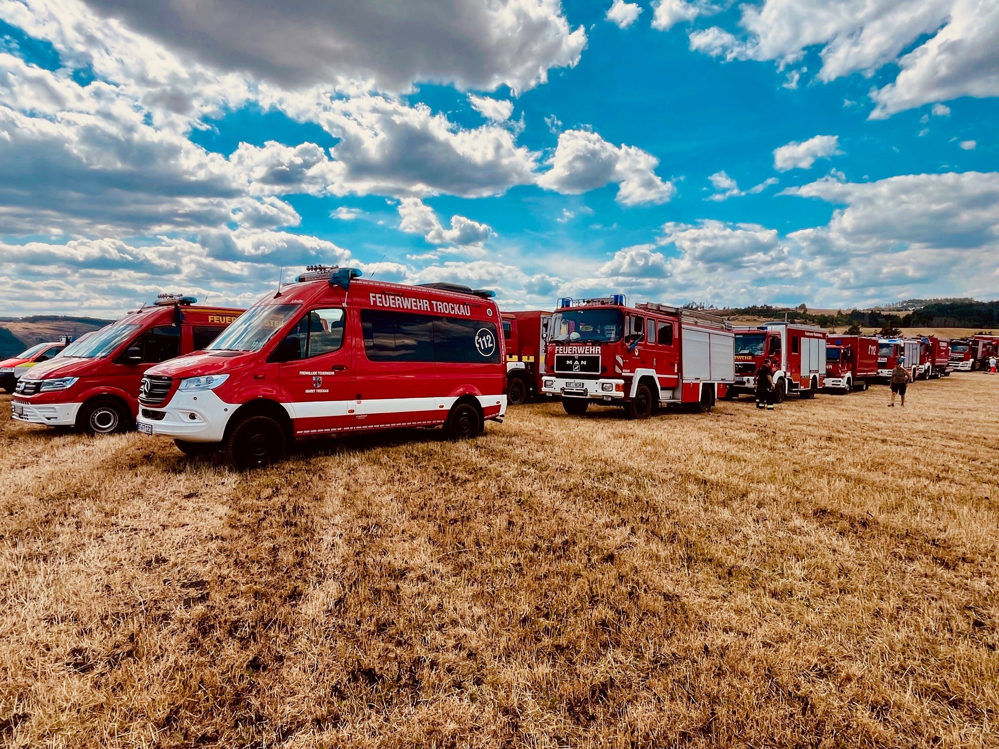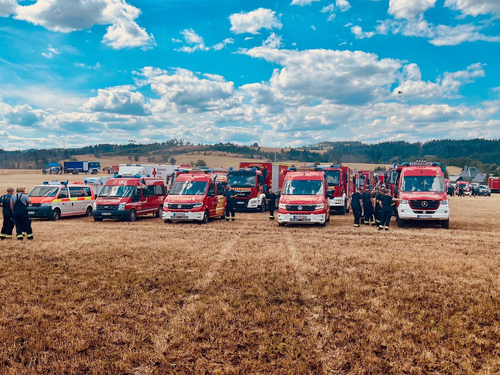 Feuerwehr, Flughelfer und Verpflegungseinheit leisten wertvolle Hilfe bei Waldbrand nahe Saalfeld