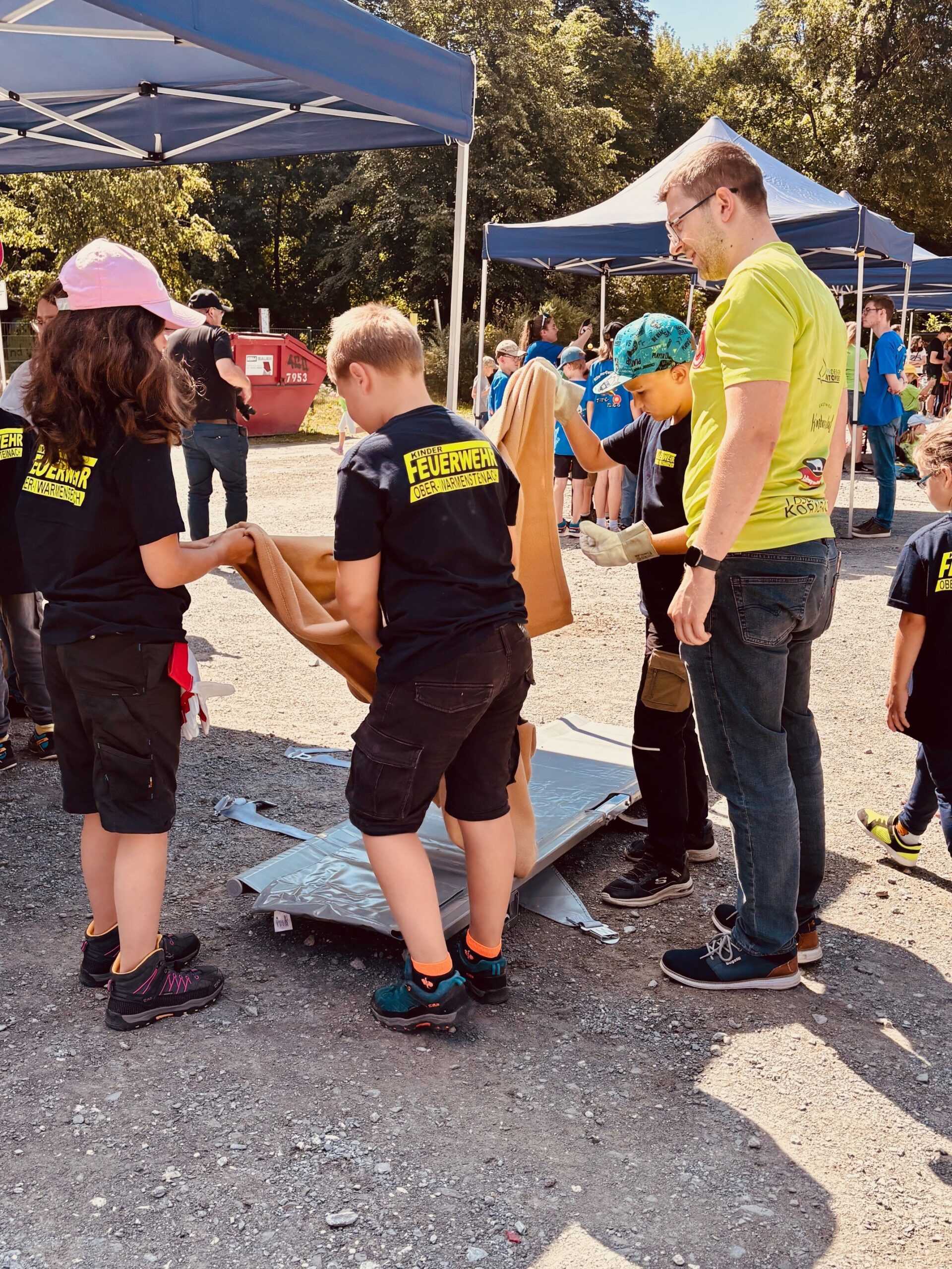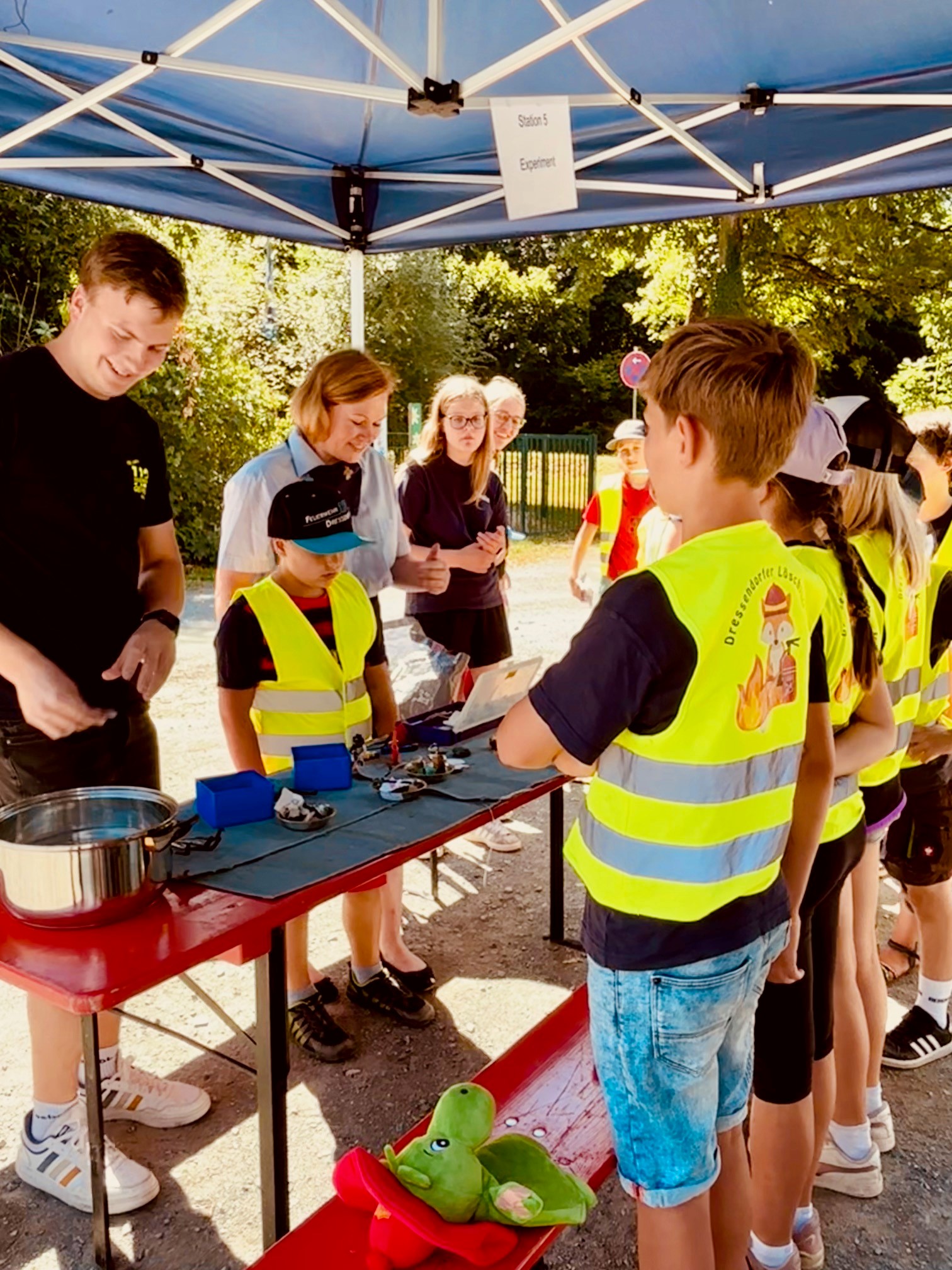 Schon beim Eintreffen war die Vorfreude spürbar – für viele Kinder ist dieser Tag ein Höhepunkt im Jahreskalender. Mit großem Elan stürzten sich die kleinen Feuerwehrfans im Alter von sechs bis zwölf Jahren auf die liebevoll vorbereiteten Stationen. Spielerisch und altersgerecht konnten sie sich in typischen Aufgaben rund um das Thema Feuerwehr beweisen: Erste Hilfe leisten und einen Notruf absetzen, Feuerwehrgeräte korrekt zuordnen, Dosenschießen mit der Kübelspritze und eine kreative Überraschungsübung forderten Geschick, Aufmerksamkeit und Teamarbeit. Ein spannendes Experiment zeigte zudem anschaulich den Unterschied zwischen brennbaren und nicht brennbaren Stoffen – ein Aha-Erlebnis für viele.