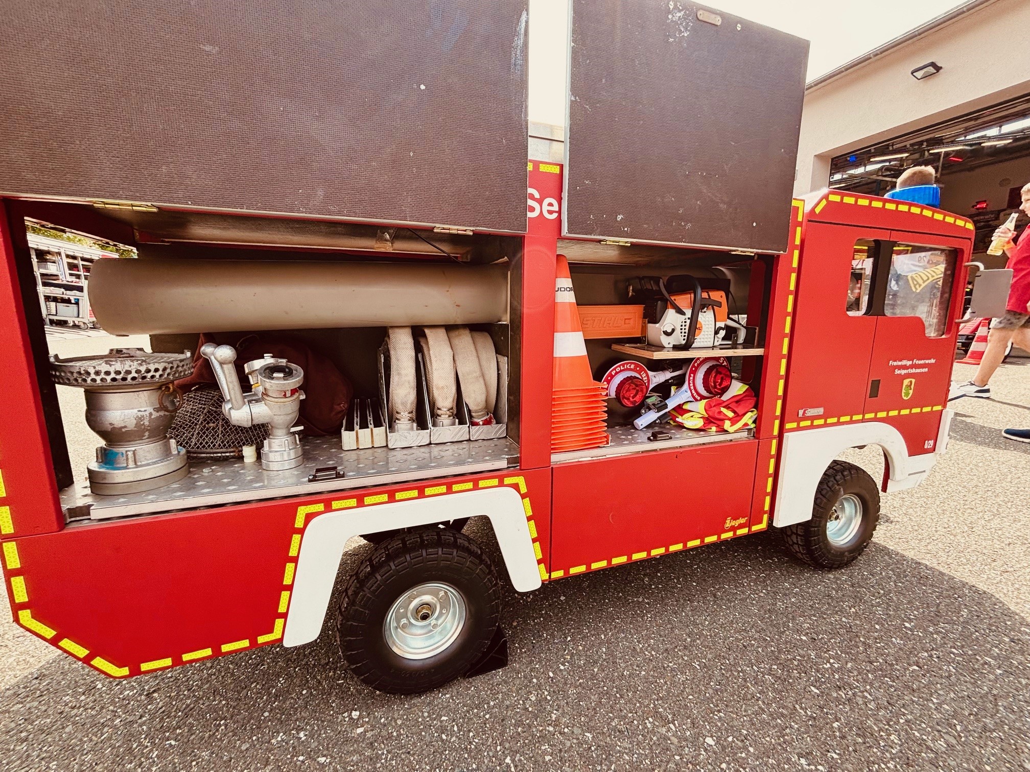 Jedes Fahrzeug erzählte seine eigene Geschichte: Manche waren originalgetreue Nachbauten ihrer großen Vorbilder – ausgestattet mit Atemschutzgeräten, Strahlrohren, Feuerwehrschläuchen, funktionsfähigen Tragkraftspritzen und moderner Funktechnik. Alles entstand in hunderten Stunden ehrenamtlicher Arbeit – von der ersten Skizze bis zur finalen Schraube – und ausschließlich auf Spendenbasis.