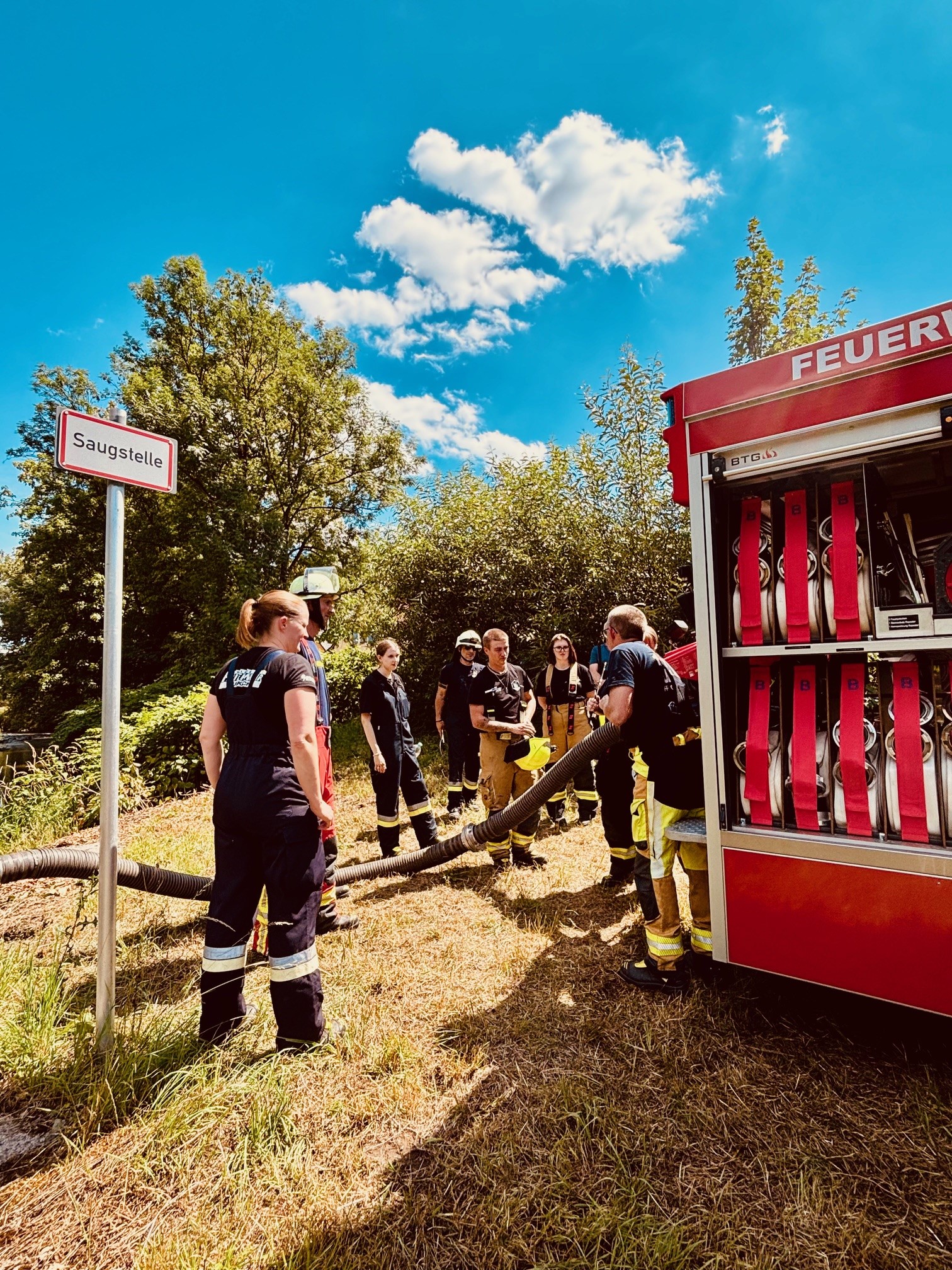 Neben Themen wie Pumpentechnik, Motorenkunde und geodätischen Höhen stand vor allem das Arbeiten an unterschiedlichen Fahrzeugen und Feuerlöschkreiselpumpen im Vordergrund. Ein echtes Highlight war der Aufbau und das Ausmessen einer langen Schlauchstrecke – ganz traditionell und ohne moderne Hilfsmittel.