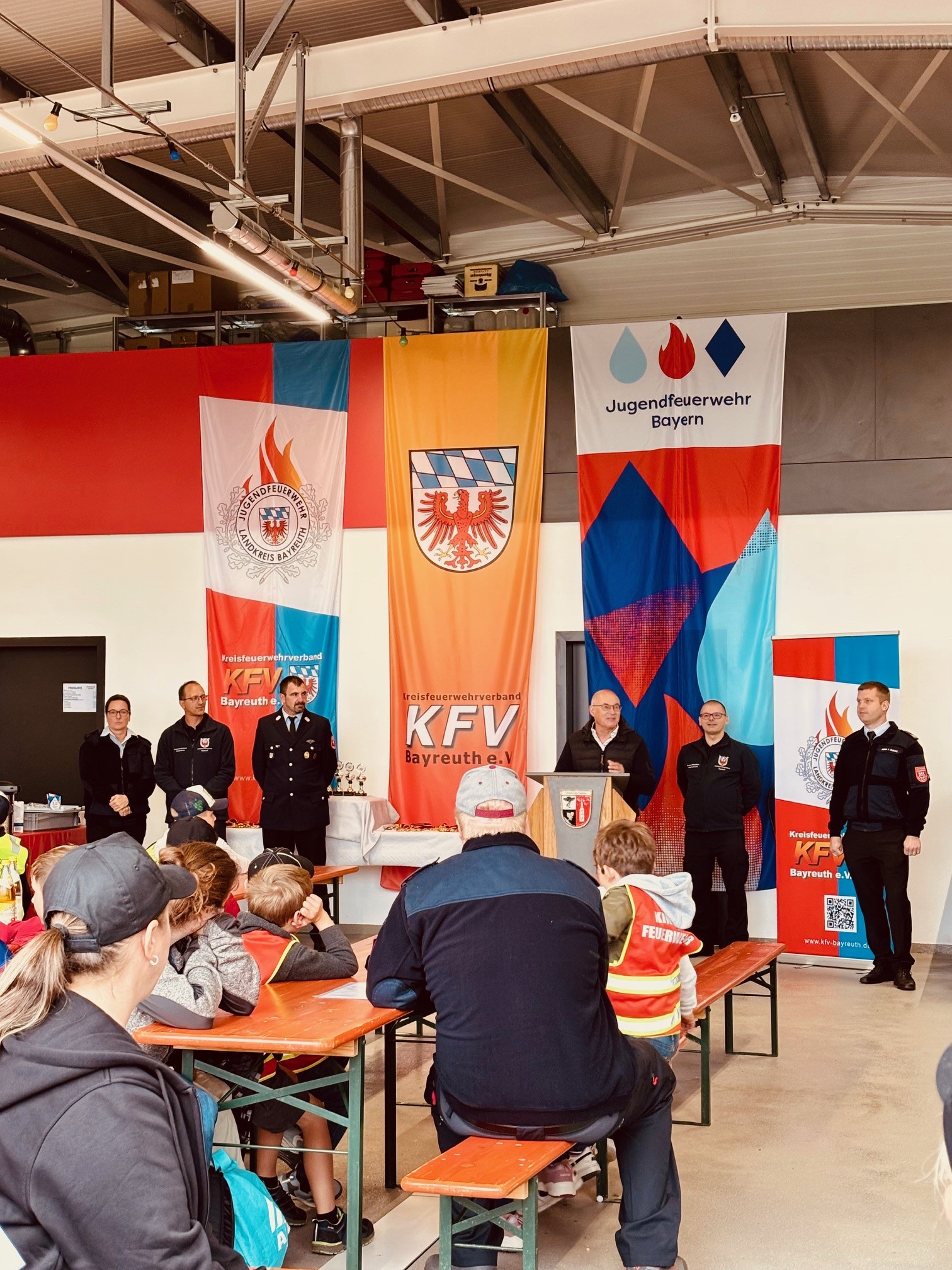 Kreisbrandinspektor Sven Kaniewski eröffnete die Veranstaltung und begrüßte neben den teilnehmenden Kindern mit ihren Betreuern und den Schiedsrichtern auch Bürgermeister Harald Feulner. Ebenfalls anwesend waren Kreisjugendfeuerwehrwart Tobias Eckert, die Kinderfeuerwehrbeauftragte der Inspektion II, Kathrin Fiedler, sowie der stellvertretende Kreisjugendgruppensprecher Lukas Jahn. Ihre Anwesenheit machte deutlich, welchen hohen Stellenwert die Nachwuchsarbeit in der Feuerwehr genießt.