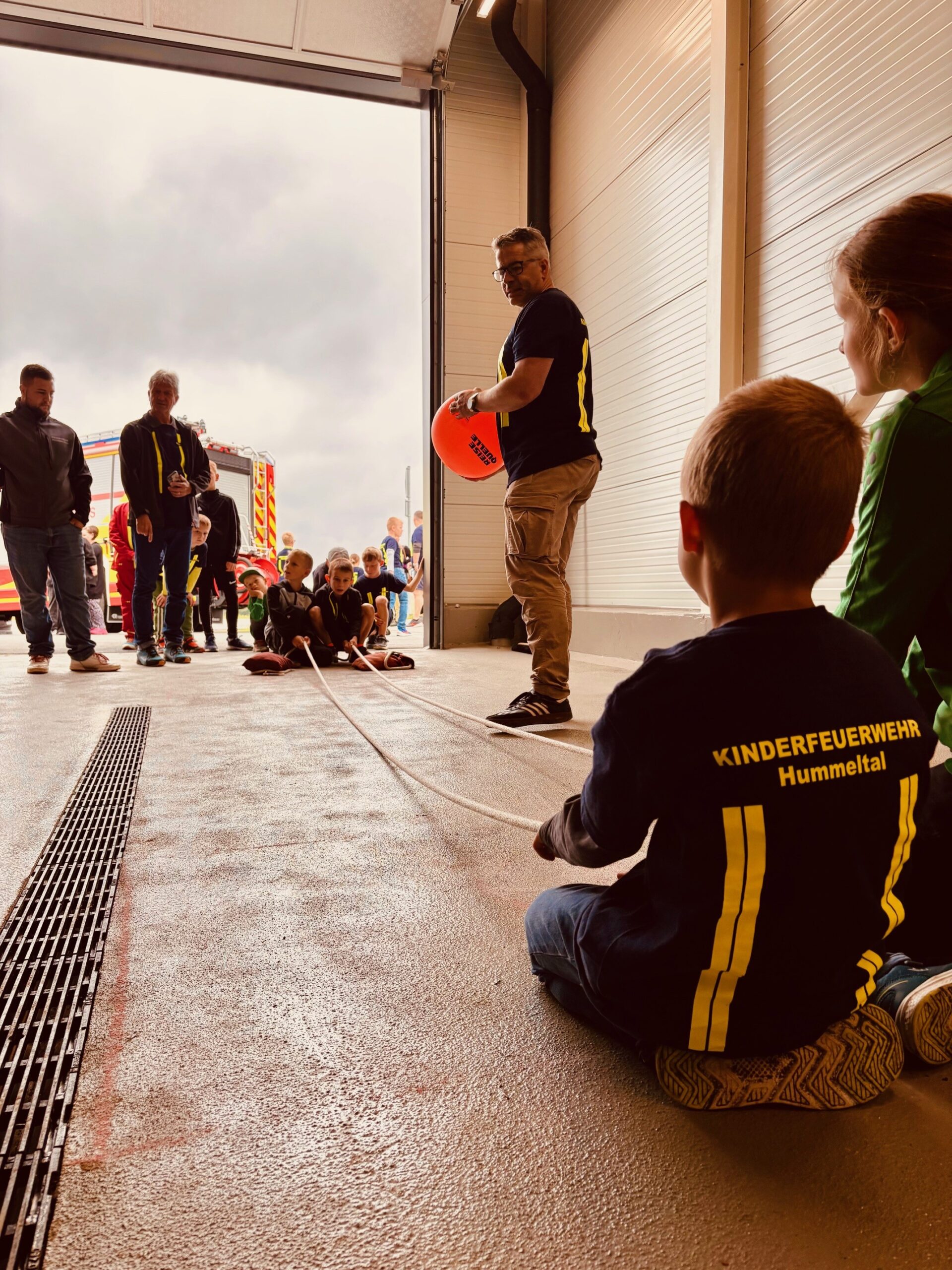 Hochmotiviert begaben sich die sechs- bis zwölfjährigen Mädchen und Jungen auf die abwechslungsreichen Stationen. Spielerisch und altersgerecht konnten sie dabei typische Aufgaben aus dem Feuerwehralltag ausprobieren: Erste Hilfe leisten, Ausrüstungsgegenstände richtig zuordnen, Knoten binden oder eine Überraschungs- und Geschicklichkeitsübung meistern. Besonders knifflig war es, einen Wasserball auf zwei von den Kindern gehaltenen Leinenbeuteln im Gleichgewicht zu halten und vom Startpunkt ins Ziel zu bringen. Teamgeist und Kommunikation waren gefragt, als die Gruppe gemeinsam auf Holzbrettern durch gleichmäßige Schritte ein festgelegtes Ziel erreichen musste. Auch bei den Testfragen bewiesen die Nachwuchsfeuerwehrler ihr theoretisches Wissen.