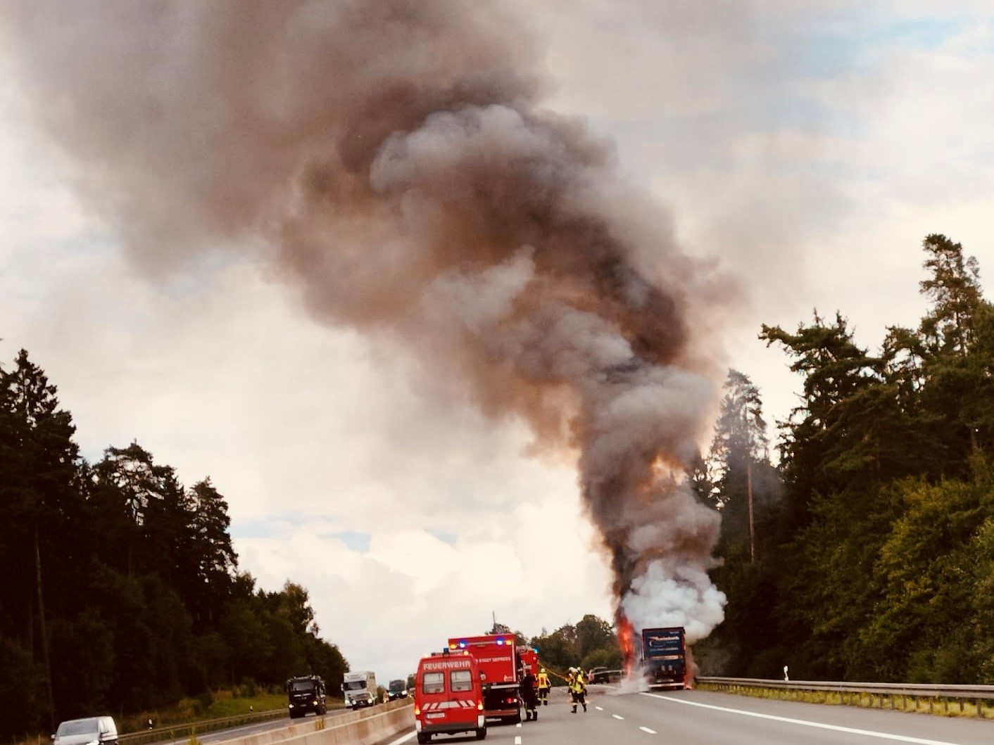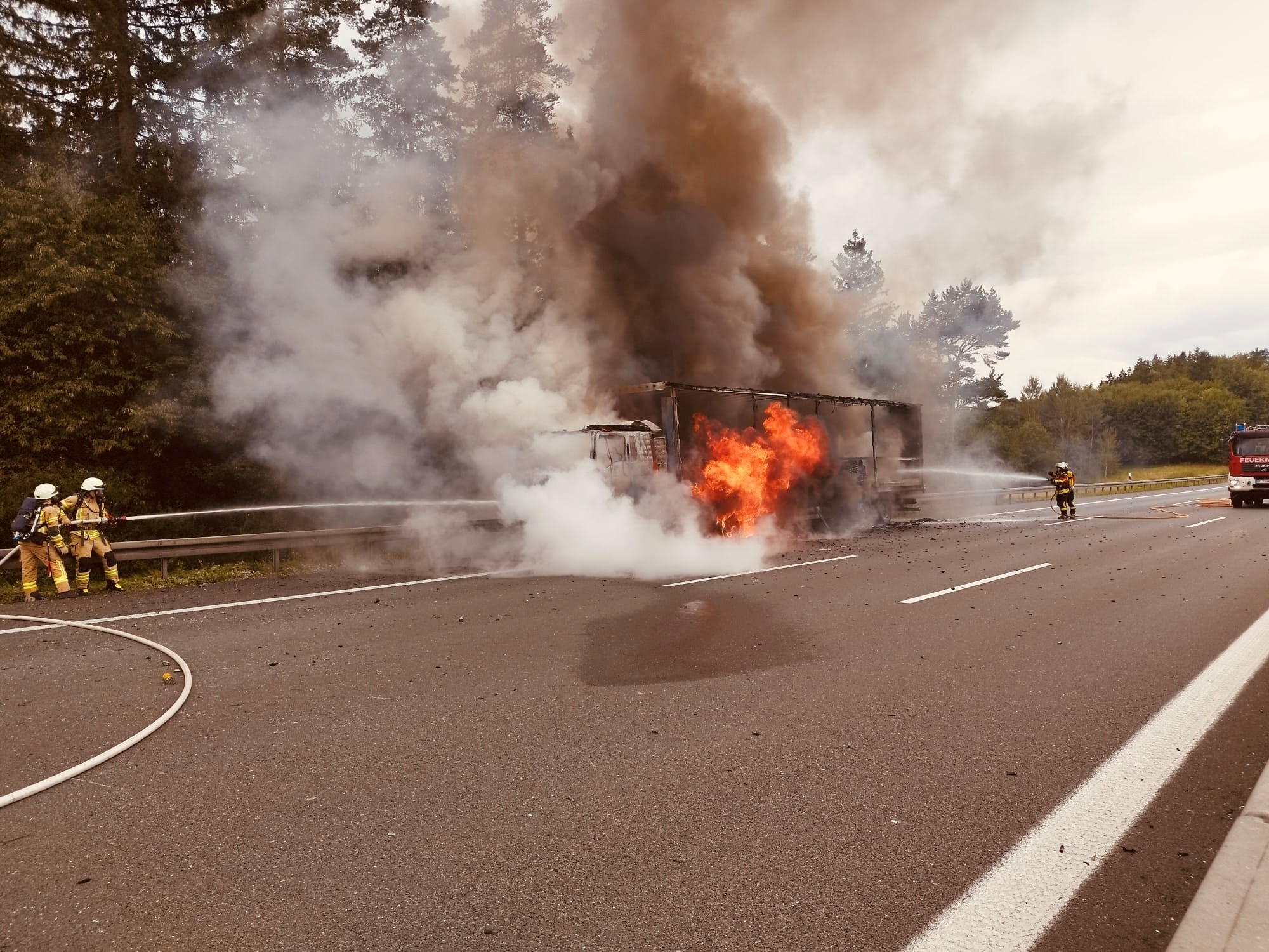 Lkw mit gefährlichen Stoffen gerät auf der A9 Höhe Gefrees in Vollbrand