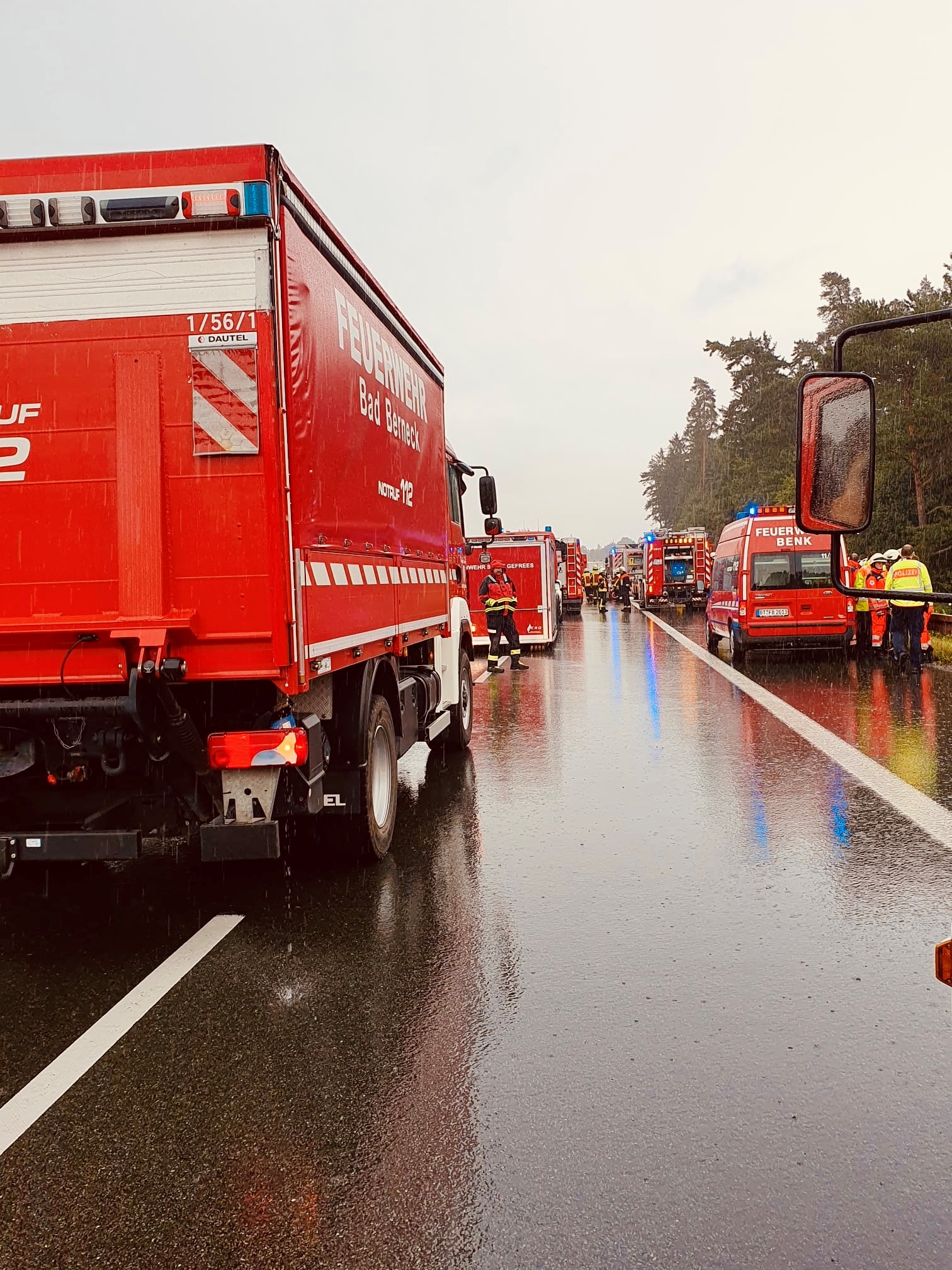 Insgesamt waren rund 70 Einsatzkräfte der Freiwilligen Feuerwehren Bad Berneck, Benk, Gefrees, Streitau, Münchberg, Marktschorgast und der Stadt Bayreuth sowie Führungskräfte der Kreisbrandinspektion gemeinsam mit dem Technischen Hilfswerk (THW), dem BRK und der Polizei über mehrere Stunden im Einsatz.