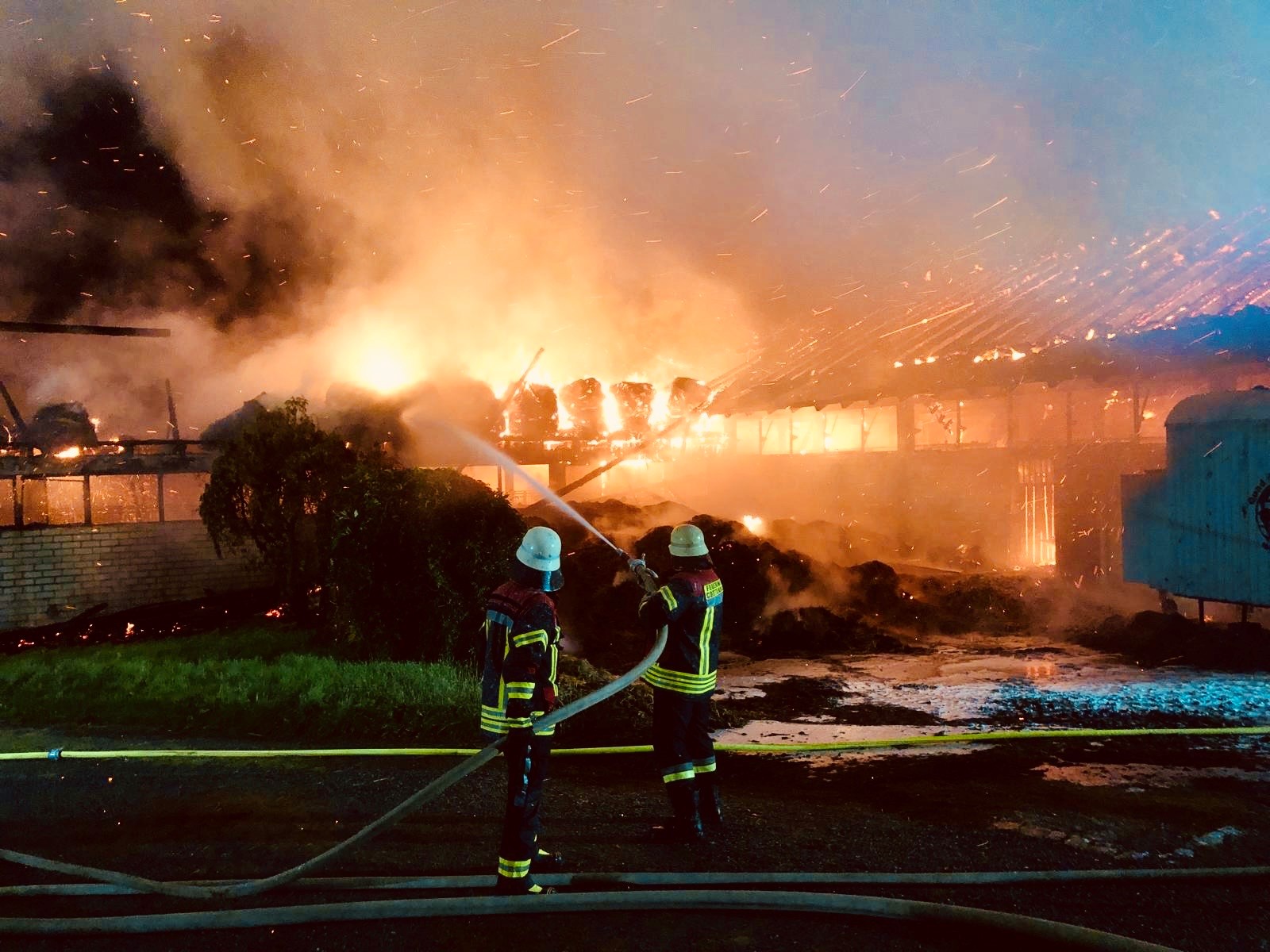 Anwohner haben geistesgegenwärtig versucht, so viele Pferdeboxen wie möglich in der in Brand stehenden Scheune zu öffnen und die Pferde ins Freie zu treiben. Glücklicherweise haben sie sich durch diesen selbstlosen Einsatz nicht verletzt. Ein Großteil der Tiere konnte gerettet werden, jedoch konnten trotz aller Bemühungen nicht alle Tiere in Sicherheit gebracht werden.