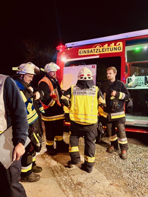 Rund 80 Einsatzkräfte trainierten am Montagabend, den 13. Oktober 2025, in Eckersdorf einen angenommenen Brand in der örtlichen Grundschule. Das Übungsszenario wurde um austretende Gefahrstoffe auf der Vorderseite des Schulkomplexes erweitert. Im Bereich der Heizungsanlage der Schule wurde ein Brandausbruch angenommen. Das Gebäude wurde geräumt, jedoch galten mehrere Personen als vermisst.