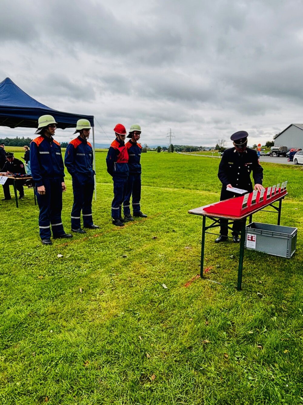 Die Spannung stieg während der kurzweiligen Grußworte, die im Vorfeld von Kreisjugendfeuerwehrwart KBM Tobias Eckert, Bürgermeister Christian Porsch sowie Frau Holl, der Tochter des verstorbenen Ehrenkreisbrandrates Ludwig Lauterbach, gesprochen wurden.