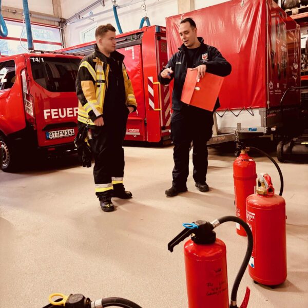 Ein elfköpfiges Prüferteam bewertete das theoretische Wissen sowie die praktischen Fertigkeiten der Teilnehmenden. Geprüft wurden unter anderem ein theoretischer Fragenkatalog, das Erläutern der Funktionen eines Strahlrohres, die Handhabung eines Feuerlöschers, das Anlegen eines Brustbundes sowie das Bedienen und Erklären eines Handfunkgeräts im Bereich Sprechfunk.