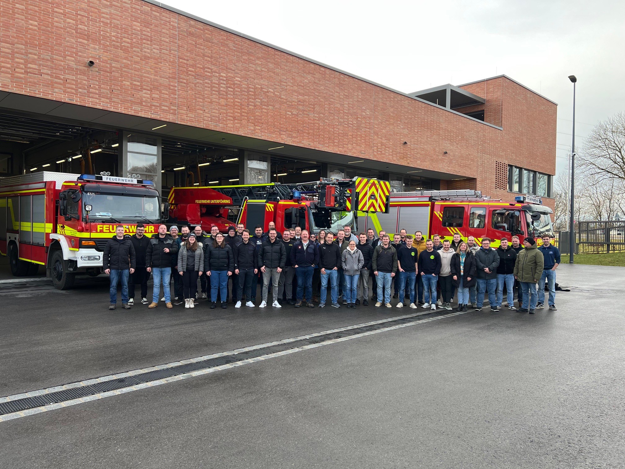 Auf der Rückfahrt am Sonntag machte die Gruppe einen letzten Halt bei der Freiwilligen Feuerwehr Unterföhring. Dort konnten die Teilnehmenden die moderne Wache besichtigen und im Gerätehaus ein gemeinsames Mittagessen zusammen mit den Kameradinnen und Kameraden aus Unterföhring genießen.