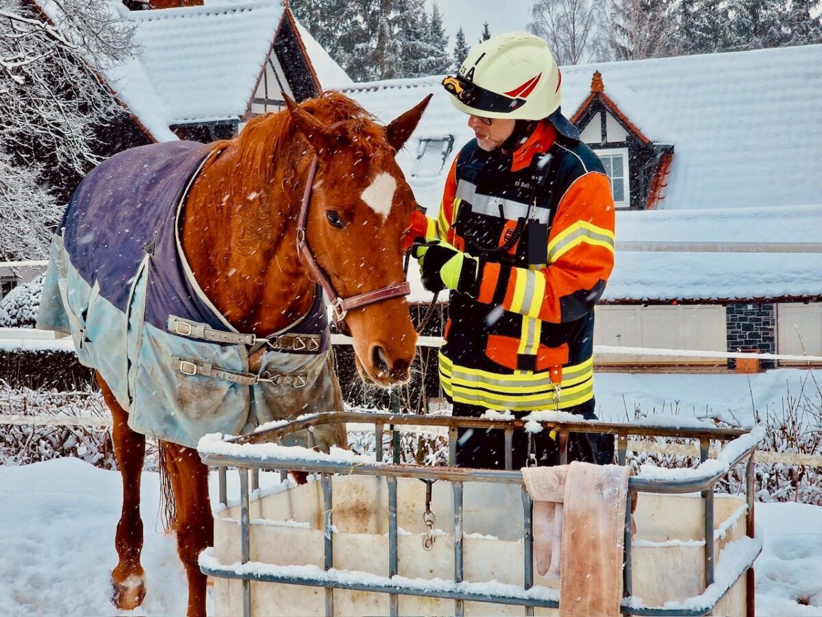 Einsätze mit Großtieren erfordern grundsätzlich ein erhöhtes Maß an Eigenschutz, da Tiere in Stresssituationen unvorhersehbar reagieren können. In diesem Fall verhielt sich das Pferd jedoch sehr ruhig, was die Maßnahmen deutlich erleichterte.