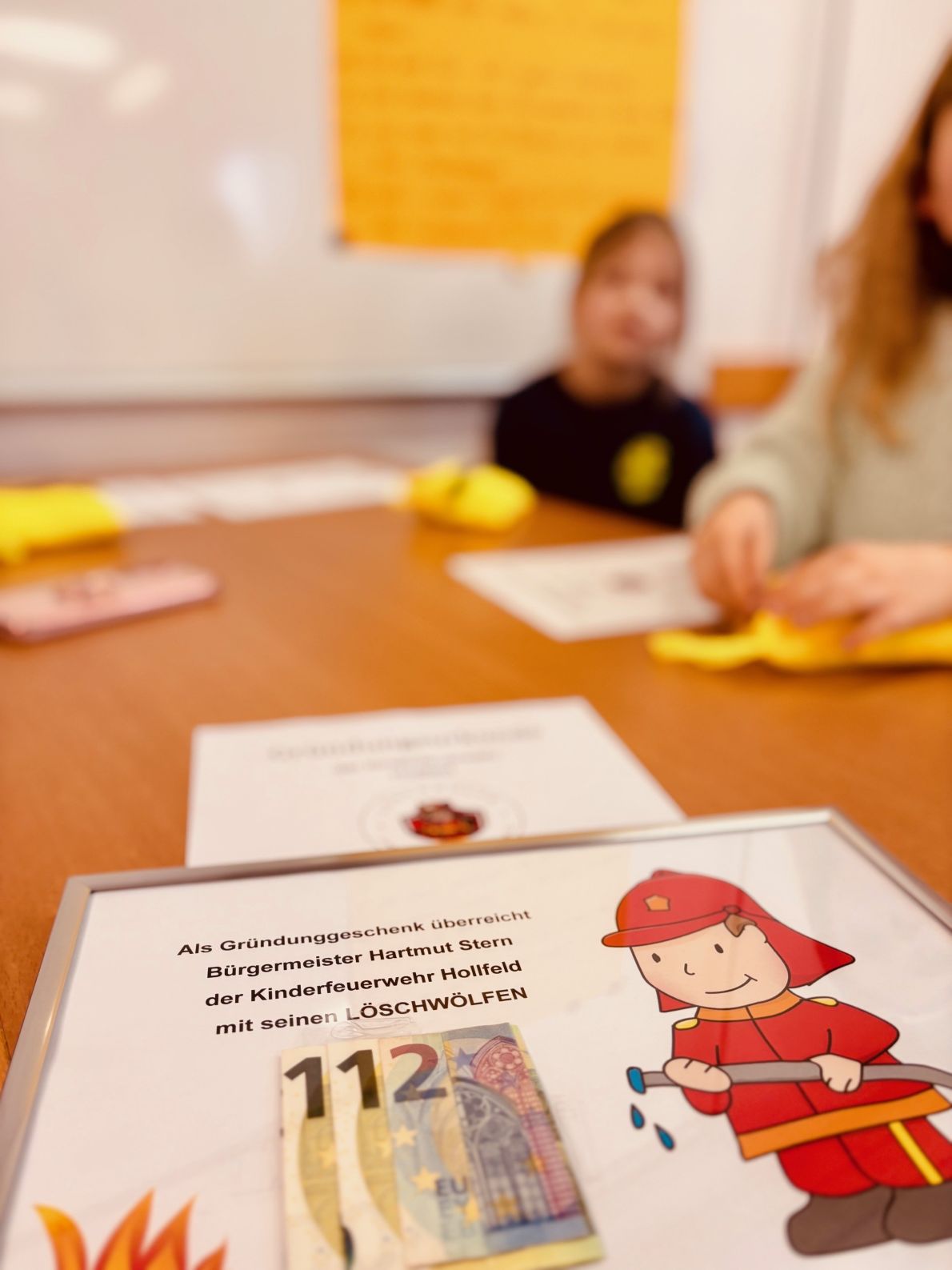 Zum Abschluss des offiziellen Teils der Feier erhielten alle Mitglieder der Löschwölfe eine Gründungsurkunde sowie eine personalisierte Warnweste, die künftig bei offiziellen Veranstaltungen getragen wird. Der Name der Kinderfeuerwehr leitet sich vom bei der Freiwilligen Feuerwehr Stadt Hollfeld stationierten Löschroboter „Wolf R1“ ab.
