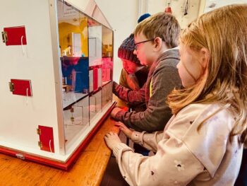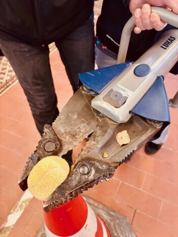Bei Kaffee und Kuchen klang die Veranstaltung in gemütlicher Runde aus. Paralell konnten sich nicht nur die Kinder mit dem Rauchhaus beschäftigen, sondern auch die Eltern gemeinsam mit ihren Kindern die Funktionsweise einer Wärmebildkamera kennenlernen und selbst ausprobieren. Zudem bot eine Geschicklichkeitsübung mit einem Spreizer die Möglichkeit, Feuerwehrtechnik hautnah zu erleben und selbst zu testen, wie schwer die Einsatzgeräte tatsächlich sind.