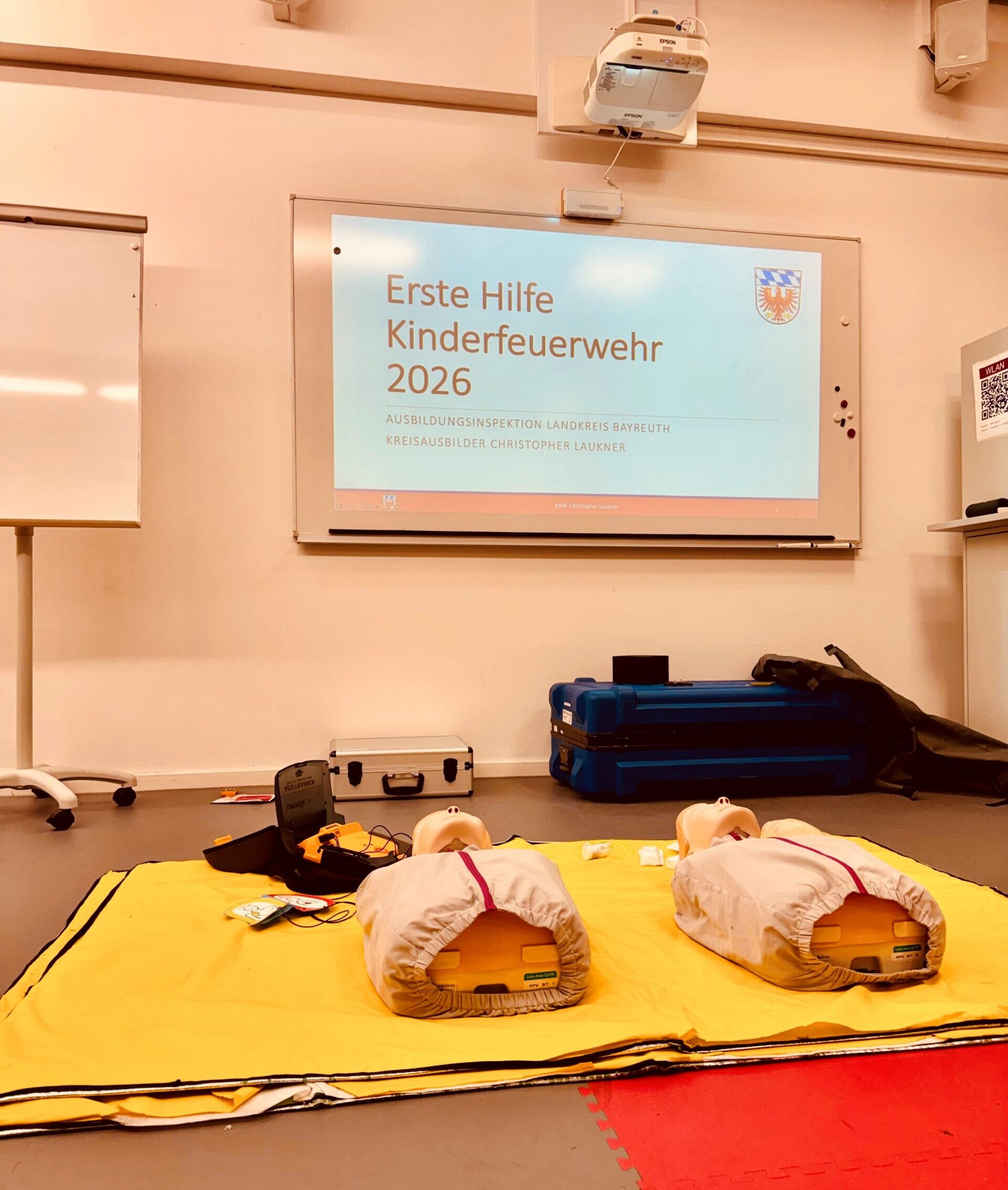 Auf dem Programm standen lebensrettende Sofortmaßnahmen, Reanimation mit Herzdruckmassage und AED, das Stillen lebensbedrohlicher Blutungen sowie die fachgerechte Erstversorgung von Wunden. Neben den praktischen Übungen blieb ausreichend Zeit, um individuelle Fragen aus dem Teilnehmerkreis zu klären und konkrete Situationen aus dem Kinderfeuerwehr-Alltag zu besprechen.