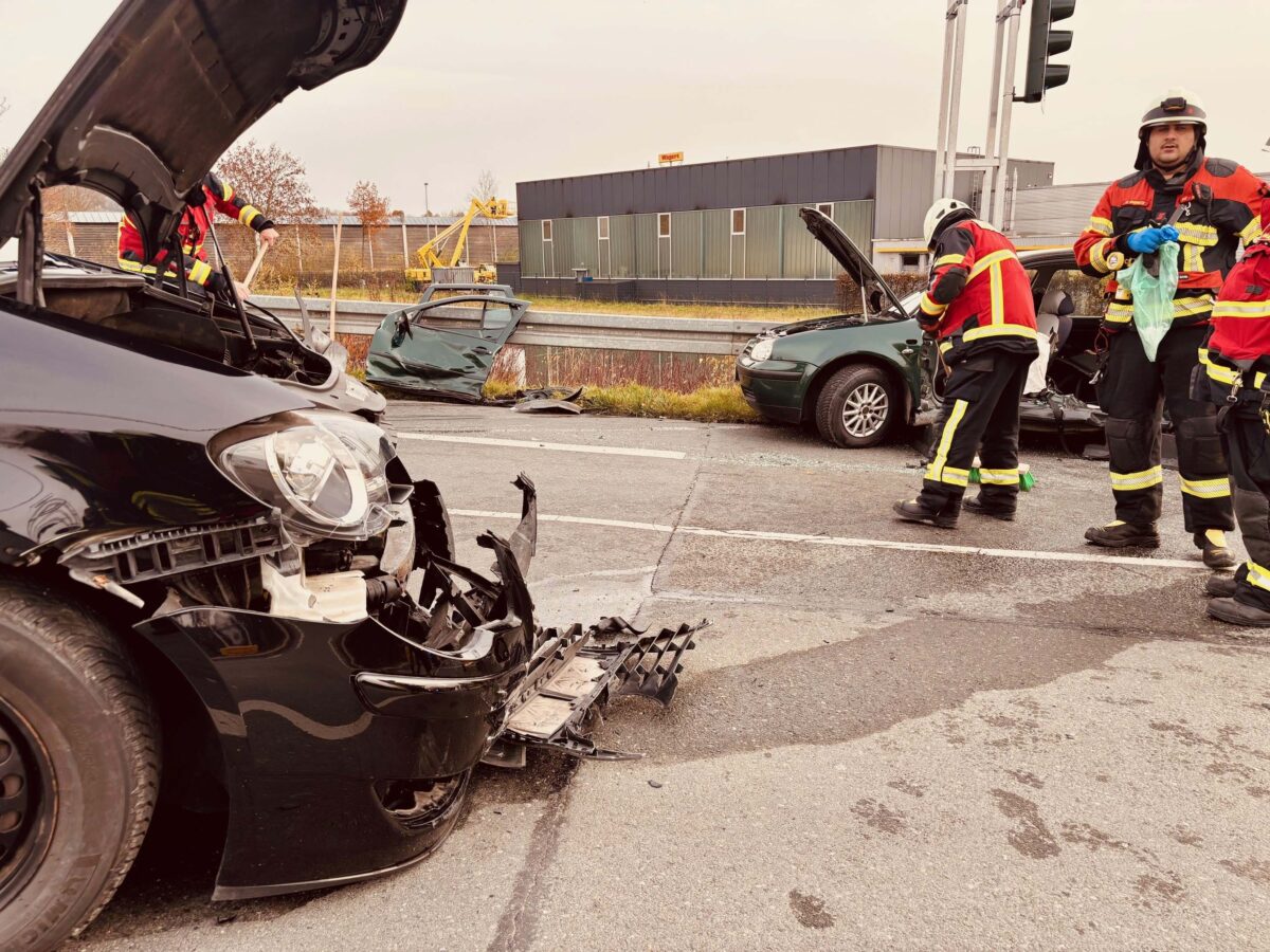 Gestern (14.11.2025) wurden Feuerwehr und Rettungsdienst kurz nach 14:30 Uhr zu einem schweren Verkehrsunfall nach Bindlach alarmiert. Entgegen der ersten Meldung über den Notruf, nach der eine Person in ihrem Pkw eingeklemmt sein sollte, wurden die Insassen der beteiligten Fahrzeuge nur leicht verletzt. Aufgrund der massiven Verformung eines Pkw nach dem Zusammenstoß war die Fahrerin…