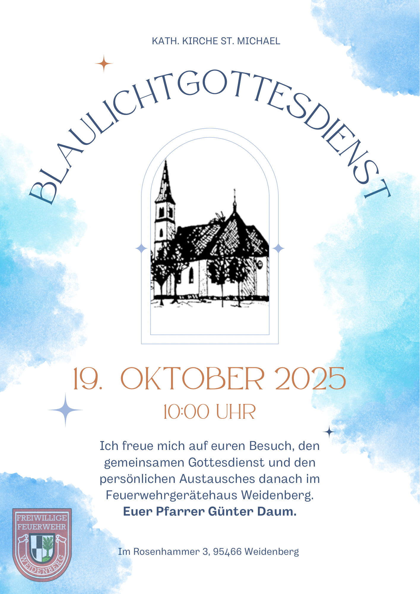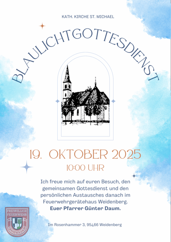 Einladung zum diesjährigen Blaulichtgottesdienst für Stadt und Landkreis Bayreuth.